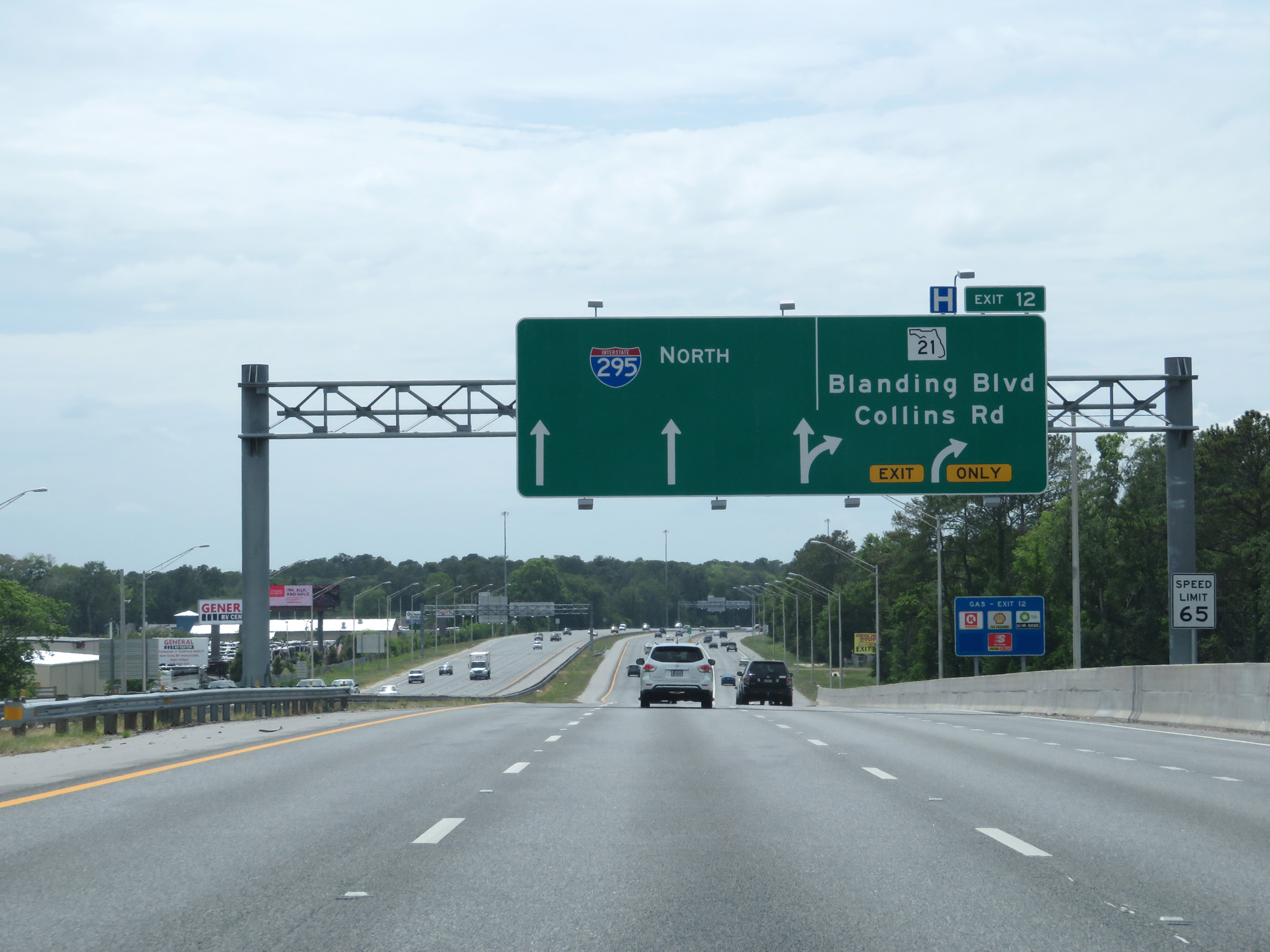 Interstate 295 Inner Loop (North) at Exit 12: FL 21 - Blanding Blvd / Collins Rd (Photo taken 5/21/17). |