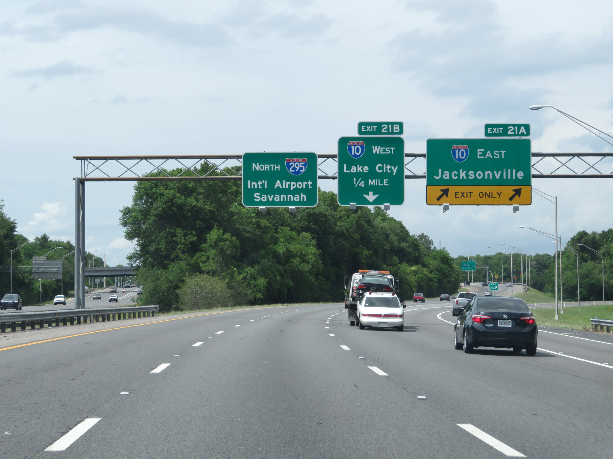 Interstate 295 Inner Loop (North) at Exit 21B: Interstate 10 West - Lake City (Photo taken 5/21/17). |