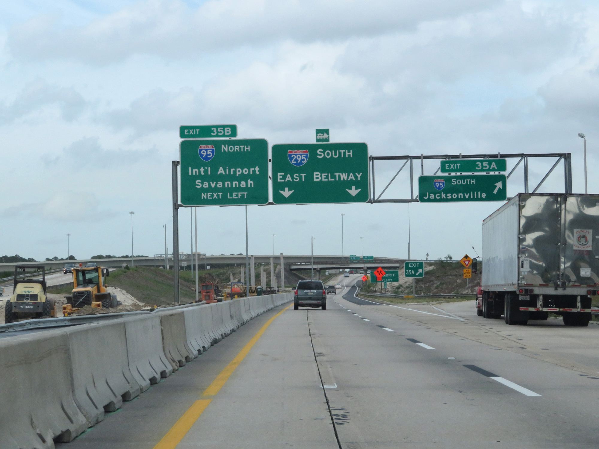 Interstate 295 Inner Loop (North) at Exit 35B: Interstate 95 North - International Airport / Savannah (Photo taken 5/21/17). |