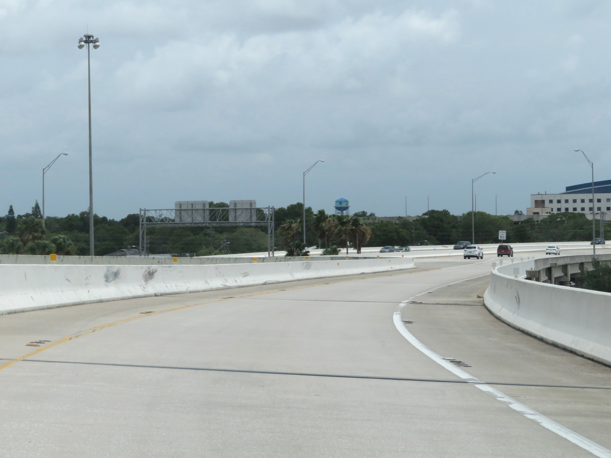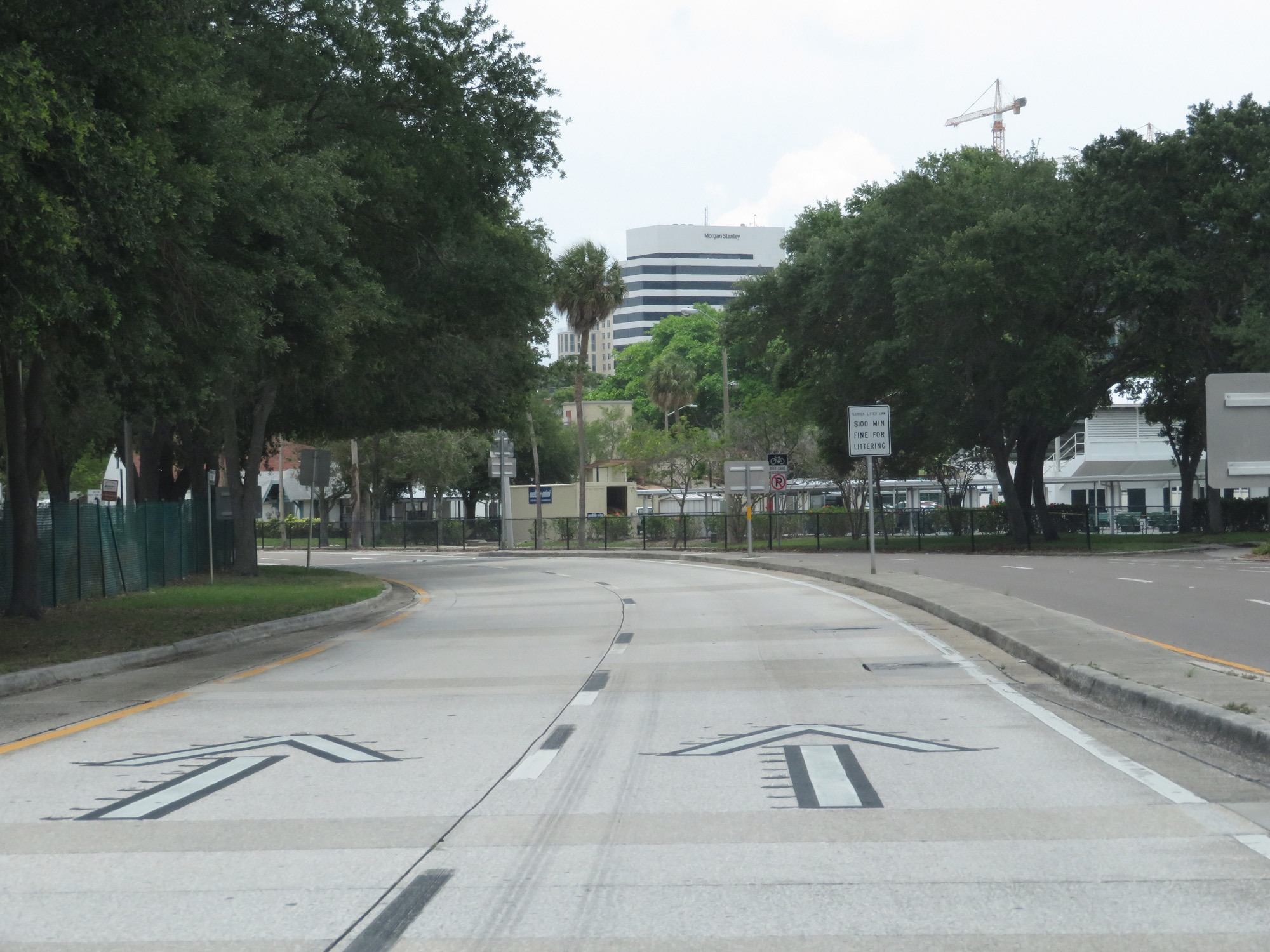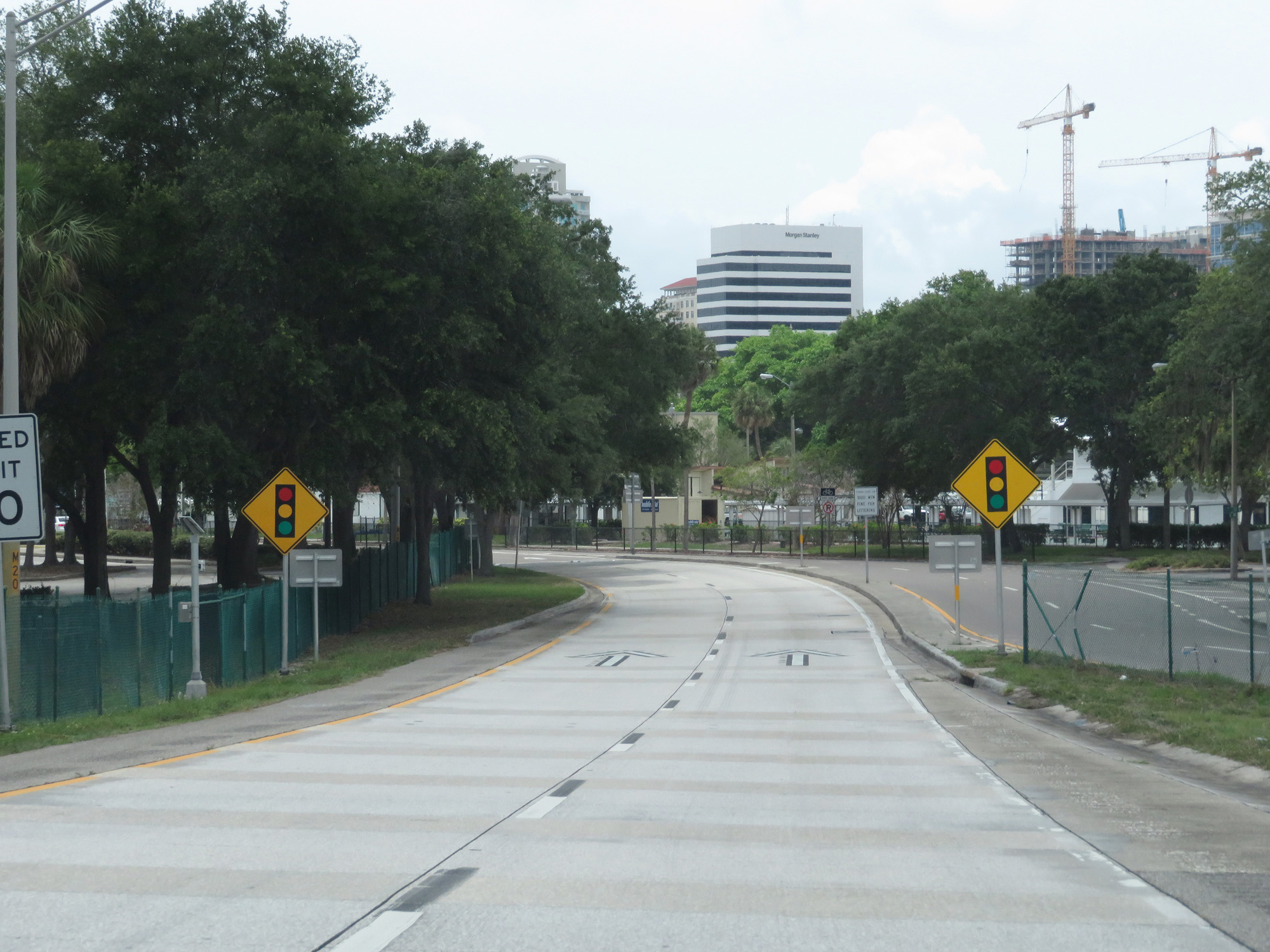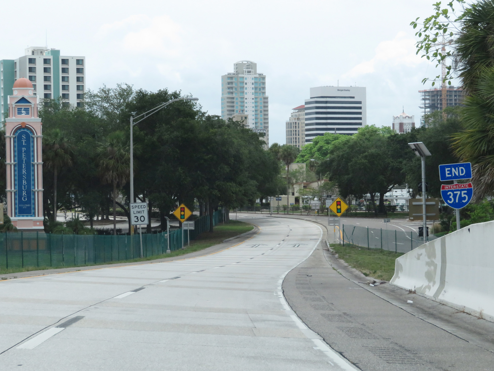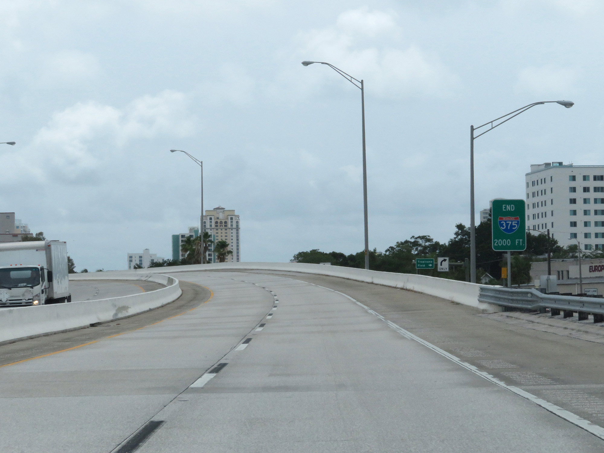 Interstate 375 East comes to an end here, as its two lanes prepare to merge into the two lanes of FL 595 seen here on the right. (Photo taken 5/23/17). |