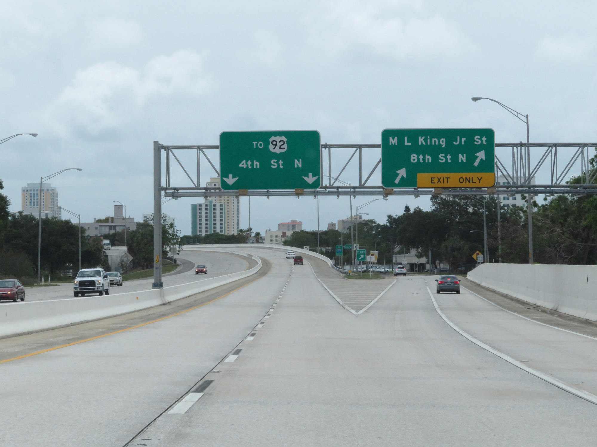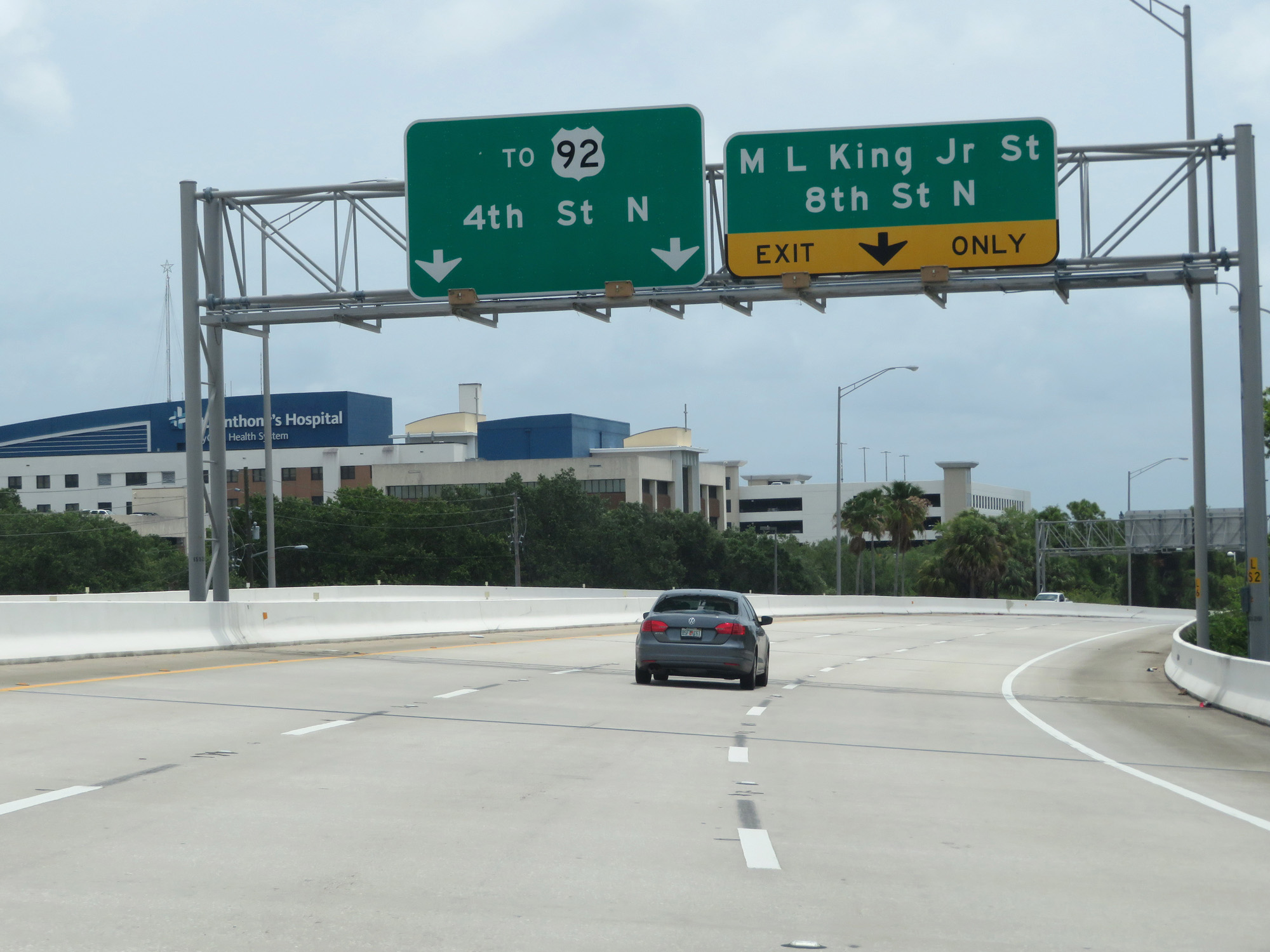 Interstate 375 East at Exit: ML King Jr St / 8th St N (Photo taken 5/23/17). |