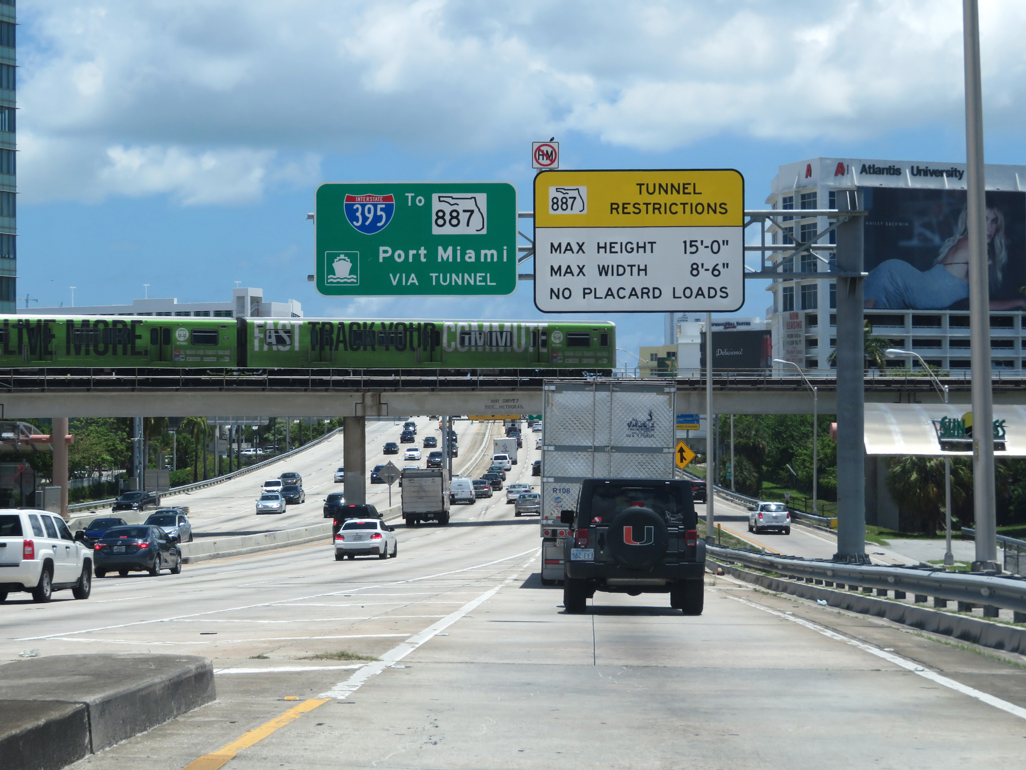 Hazardous Materials are prohibitied in the Port Miami Tunnel. (Photo taken 5/22/17). |