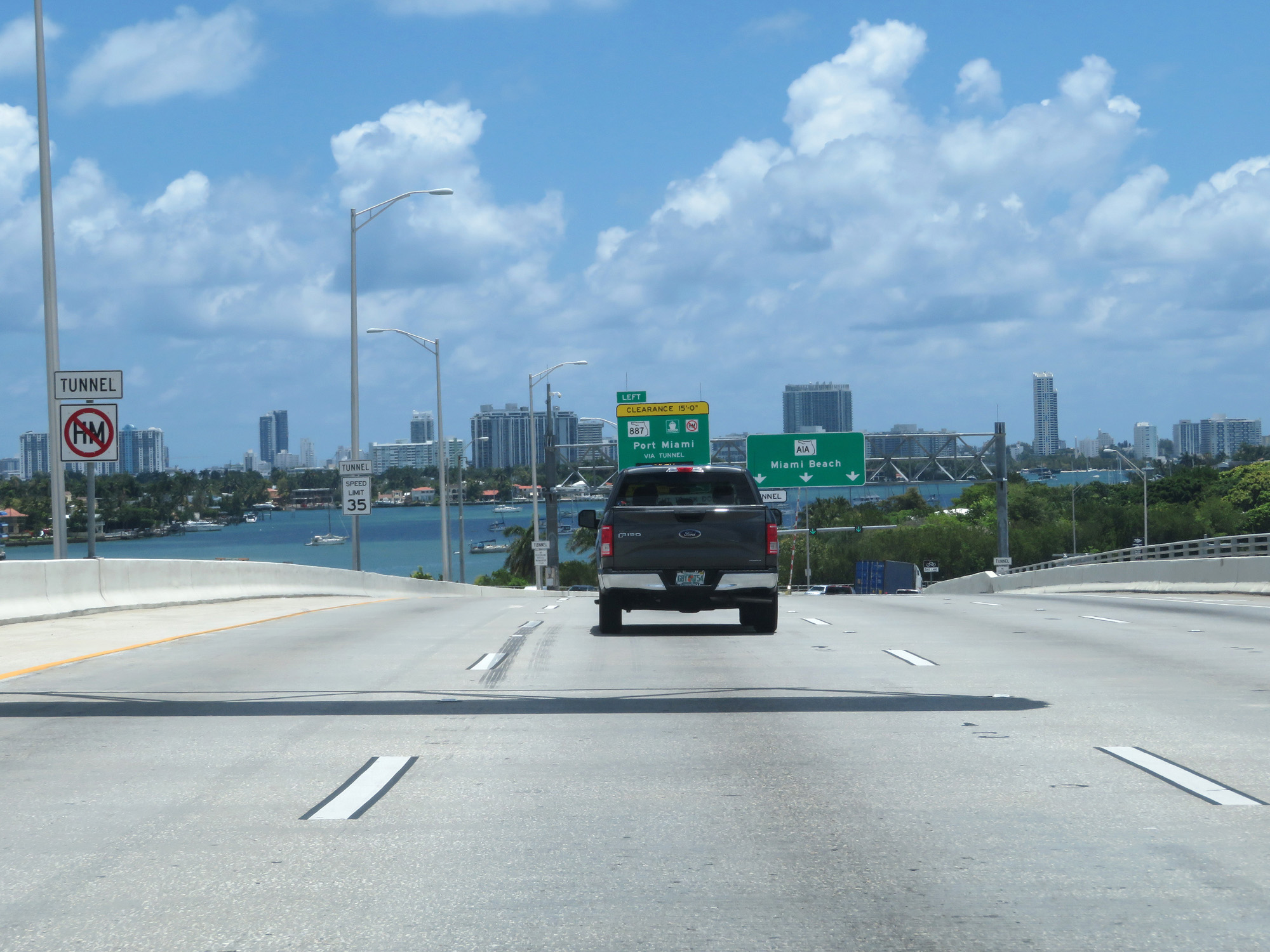 FL A1A East approaching the left exit for FL 887 toward Port Miami, via the Port Miami Tunnel. (Photo taken 5/22/17). |