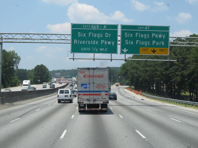 Interstate 20 West at Exit 47: Six Flags Pkwy / Six Flags Park. Yep, you guessed it - there is a Six Flags amusement park off this exit. (Photo taken 6/6/11). |