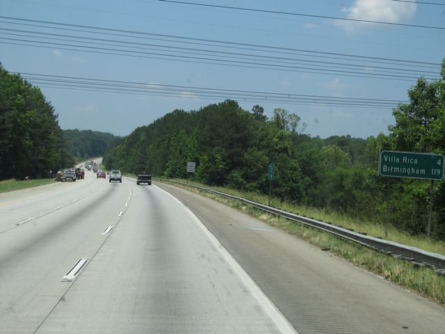 Mileage sign located at mile marker 29. It's 4 miles to Villa Rica and 119 miles to Birmingham. (Photo taken 6/6/11). |