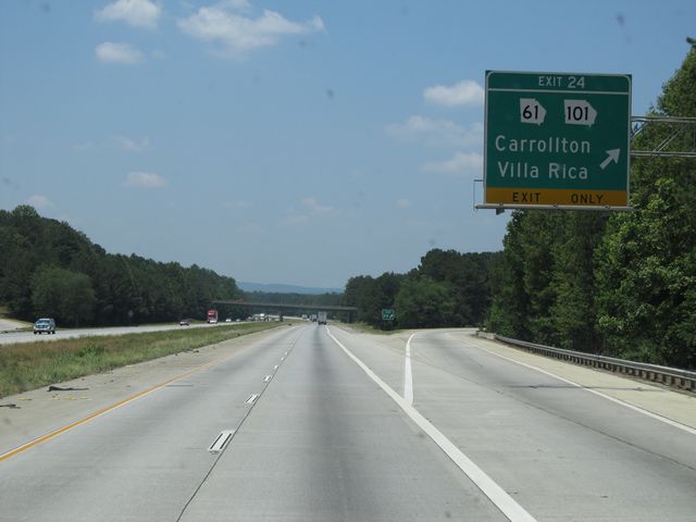Interstate 20 West at Exit 24: GA 61 / GA 101 - Carrollton / Villa Rica (Photo taken 6/6/11). |