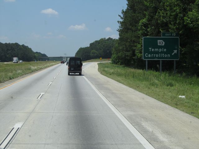 Interstate 20 West at Exit 19: GA 113 - Temple / Carrollton (Photo taken 6/6/11). |