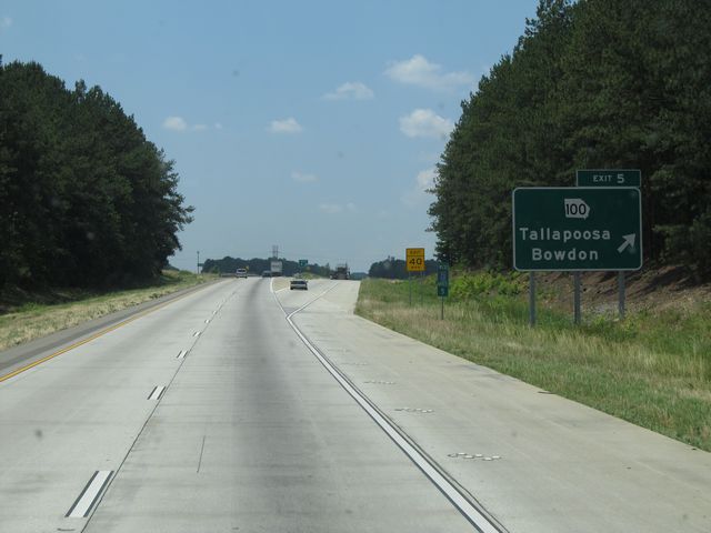 Interstate 20 West at Exit 5: GA 100 - Talapoosa / Bowdon (Photo taken 6/6/11). |