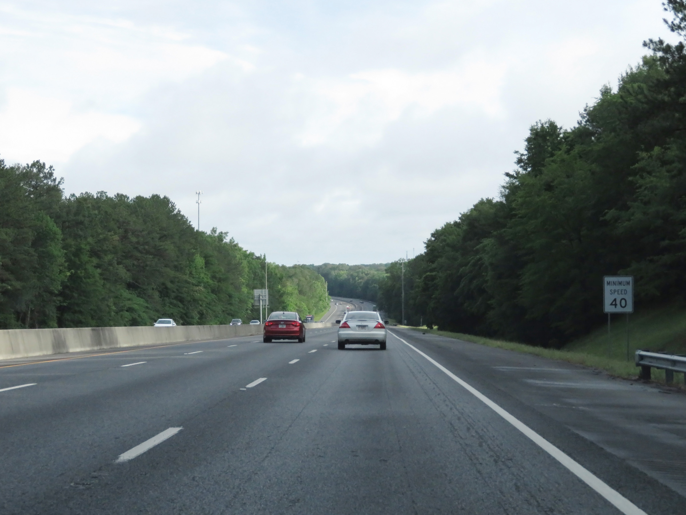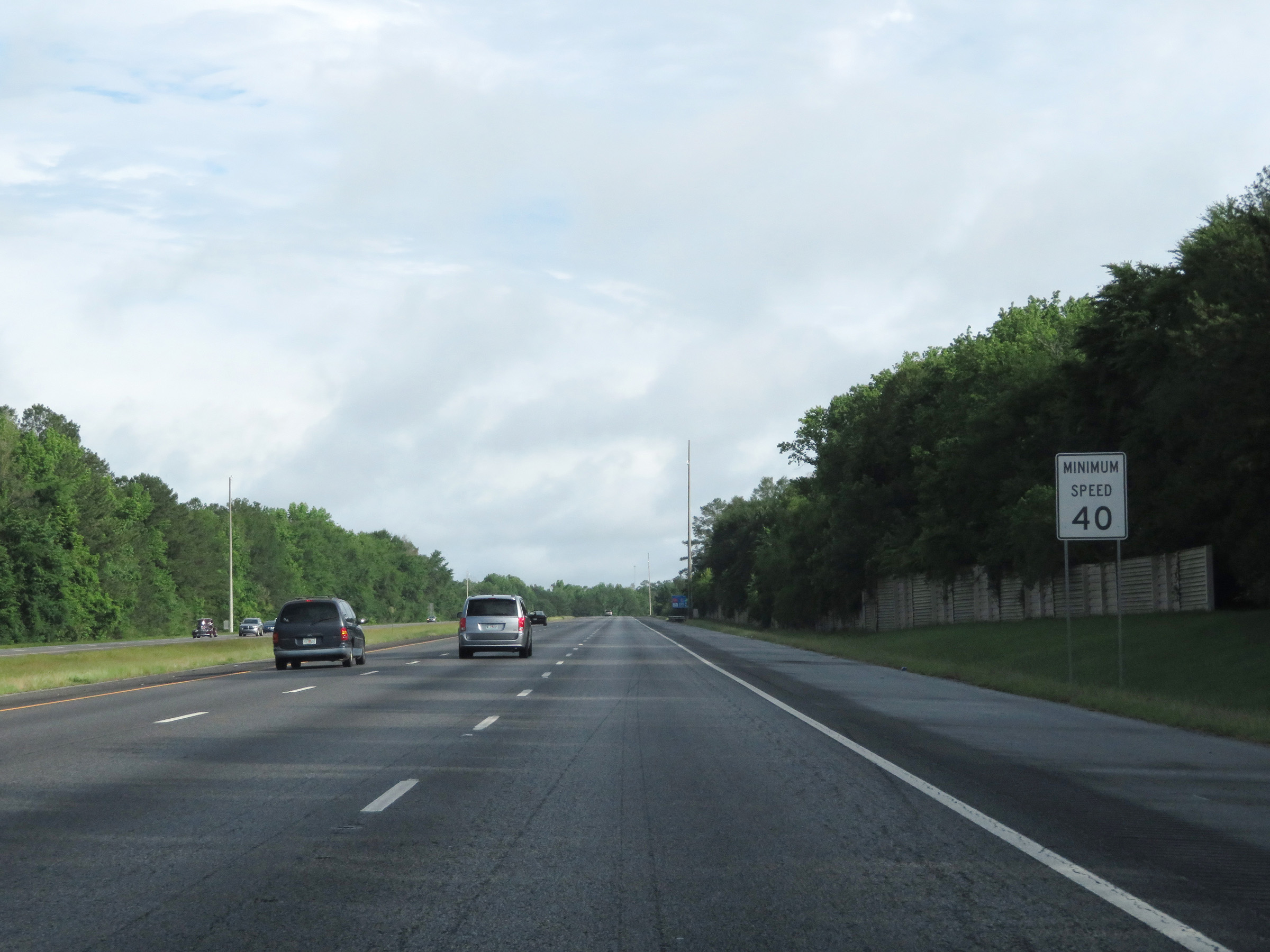 The minimum speed limit on most Interstate highways in Georgia is 40 mph, as this sign reads. (Photo taken 5/21/17). |