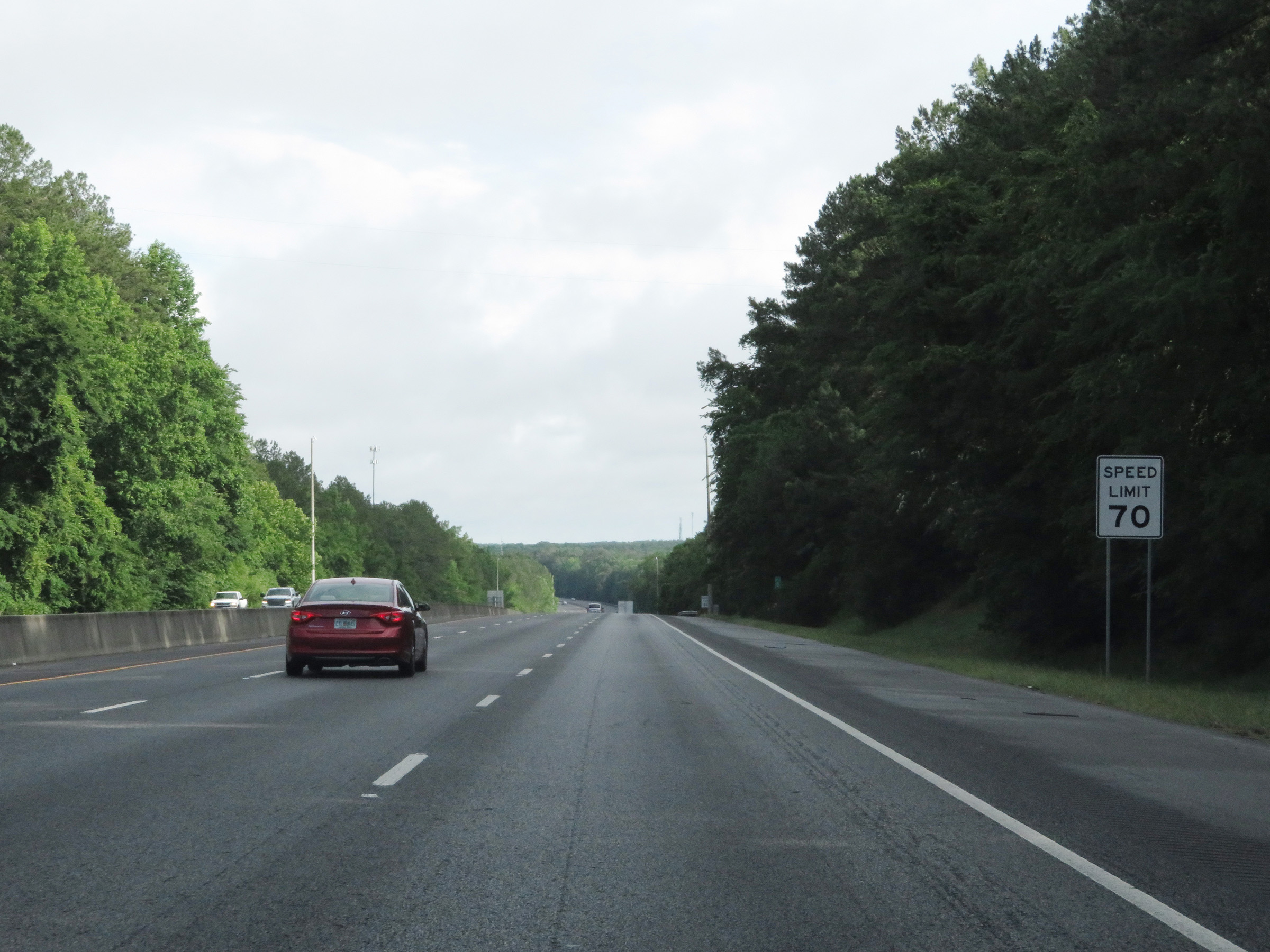 The maximum speed limit on Interstate 475 North starts out at 70 mph. This is the standard maximum speed limit on most rural Interstate highways in Georgia. (Photo taken 5/21/17). |