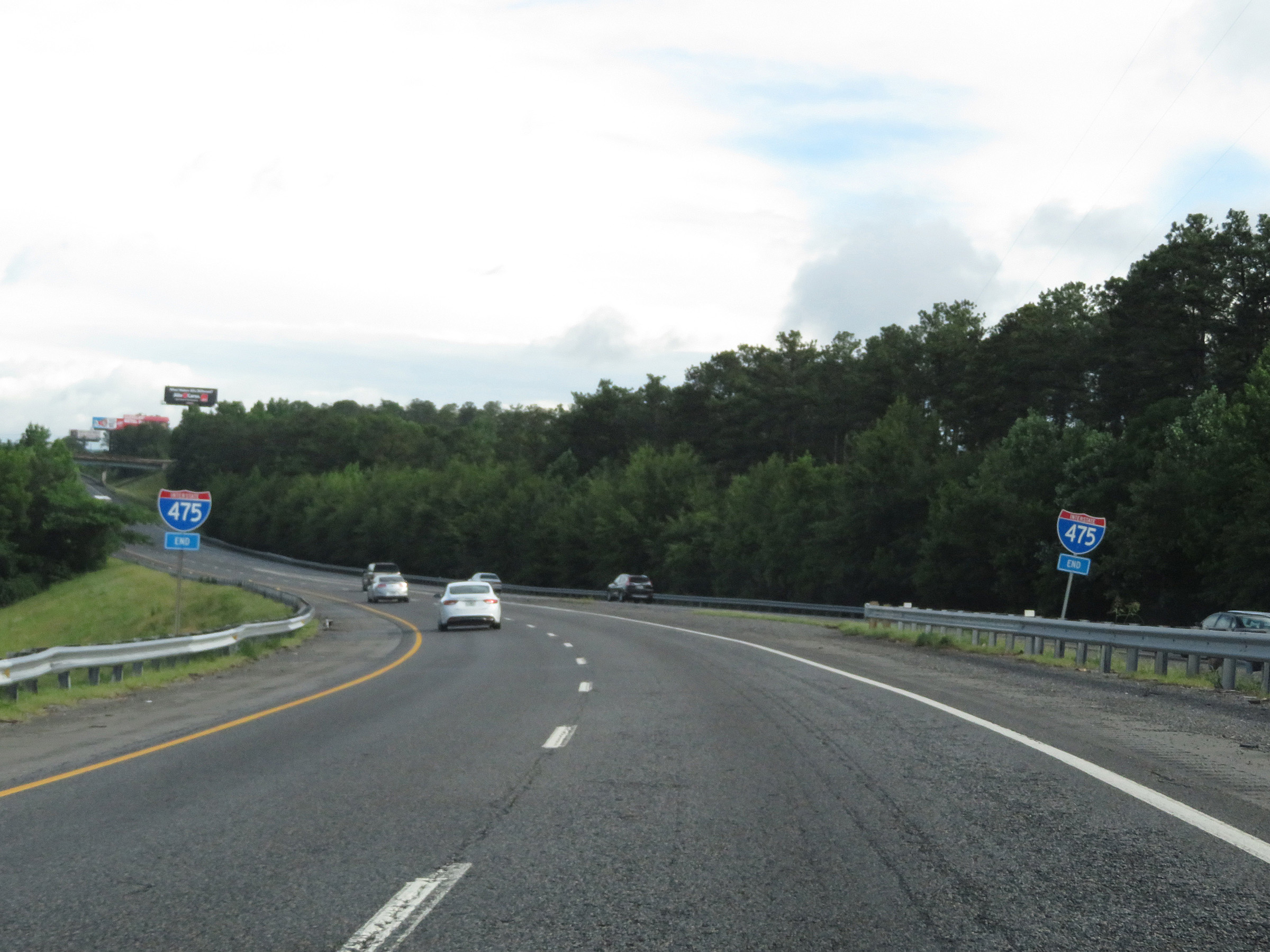 Interstate 475 END shields as its two northbound lanes prepare to merge into the northbound lanes of Interstate 75, seen straight ahead. (Photo taken 5/21/17). |