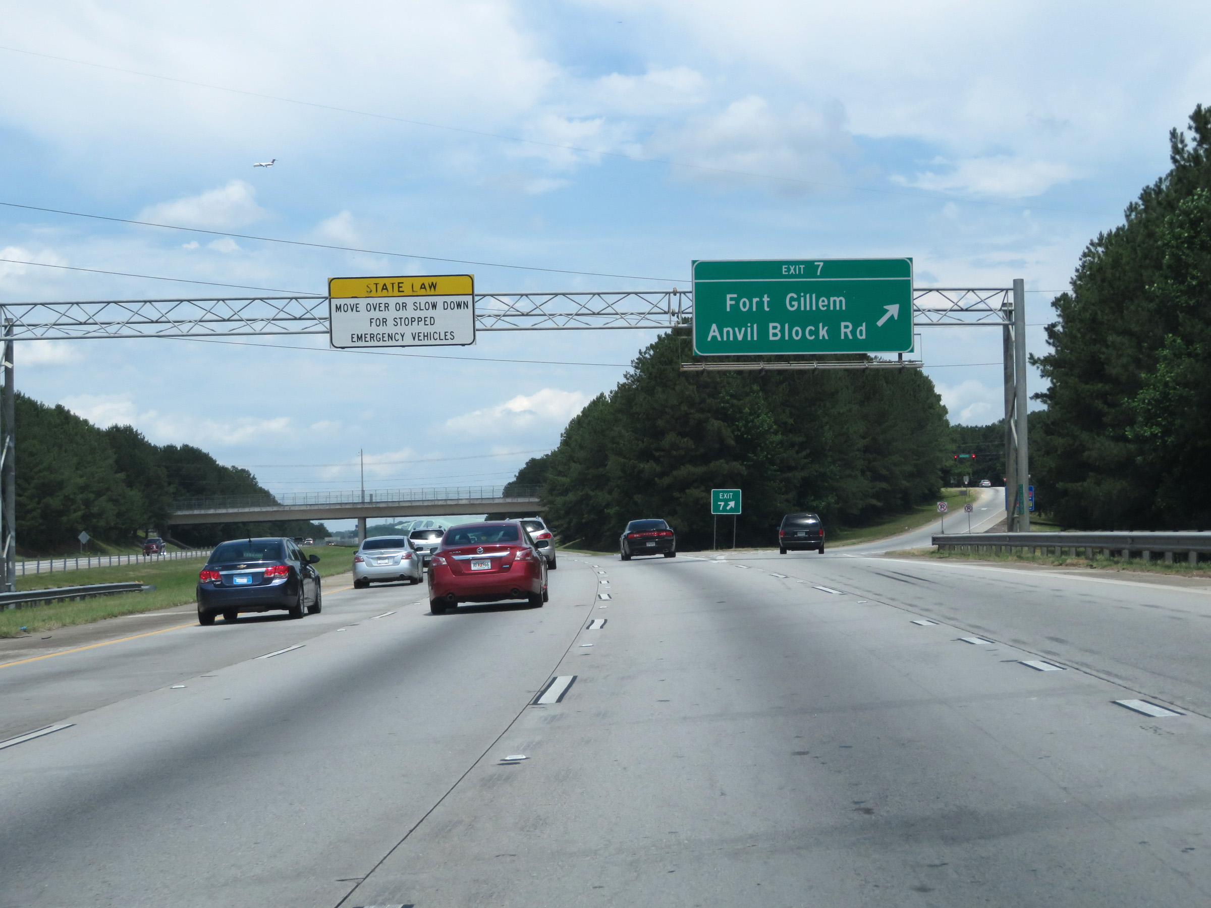 Interstate 675 North at Exit 7: Fort Gillem / Anvil Block Rd (Photo taken 5/27/17). |