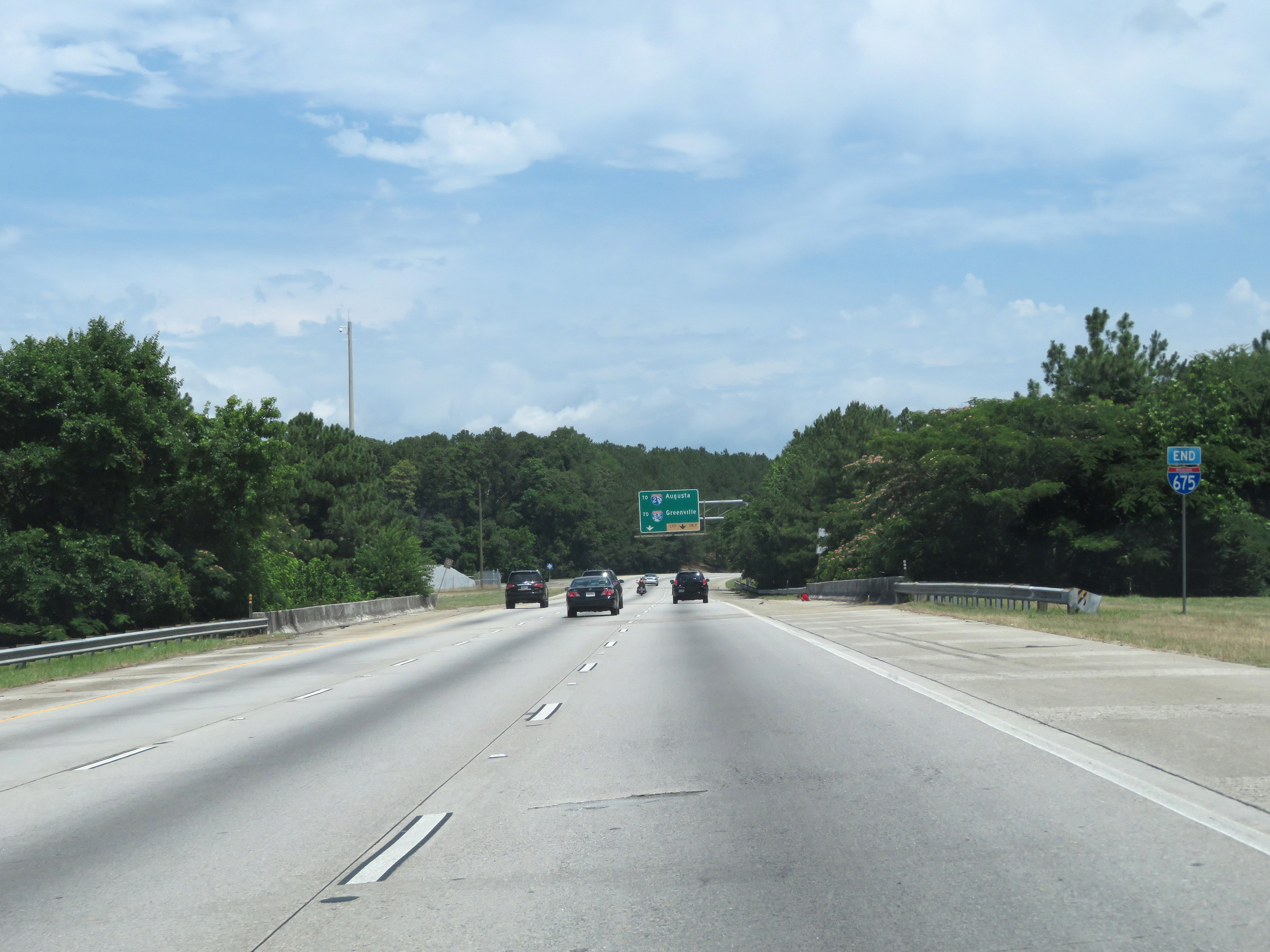 Beyond Exit 7, Interstate 675 North enters DeKalb County. (Photo taken 5/27/17). |