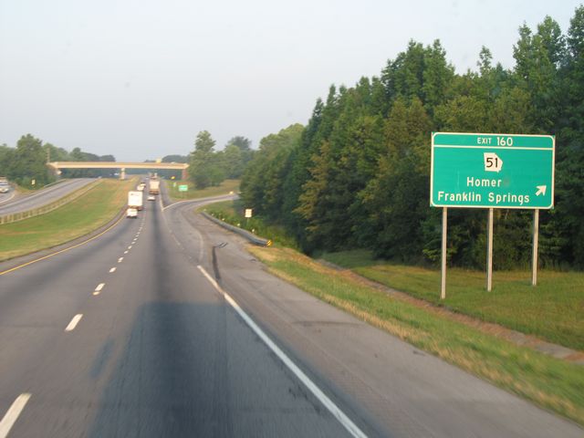 Interstate 85 South at Exit 160: GA 51 - Homer / Franklin Springs (Photo taken 6/6/11). |