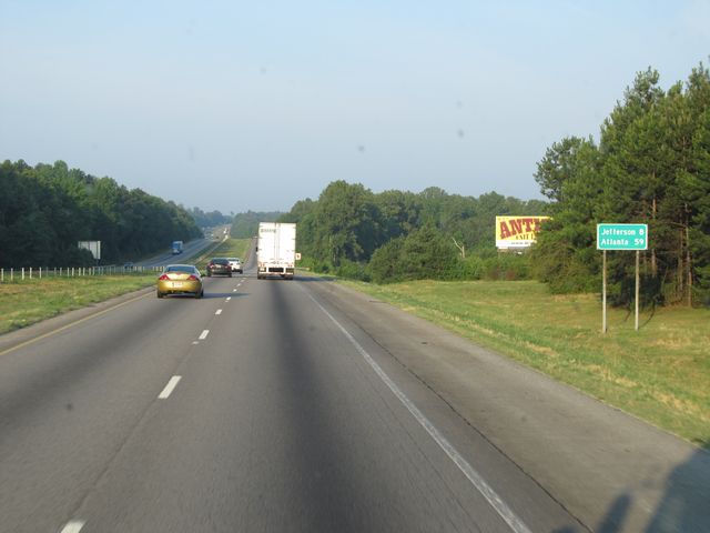 Mileage sign located near mile marker 139. It's 8 miles to Jefferson and 59 miles to Atlanta. (Photo taken 6/6/11). |