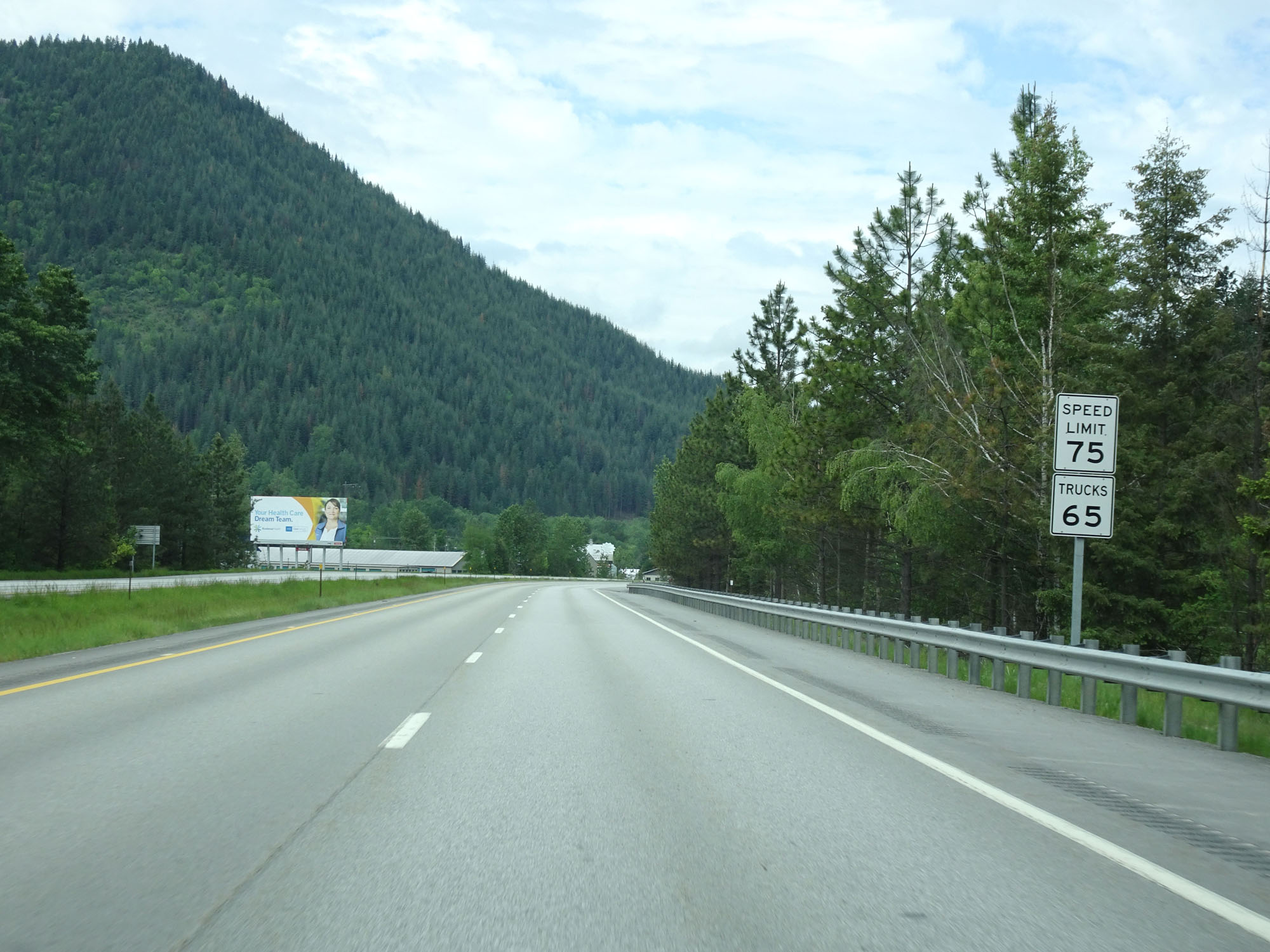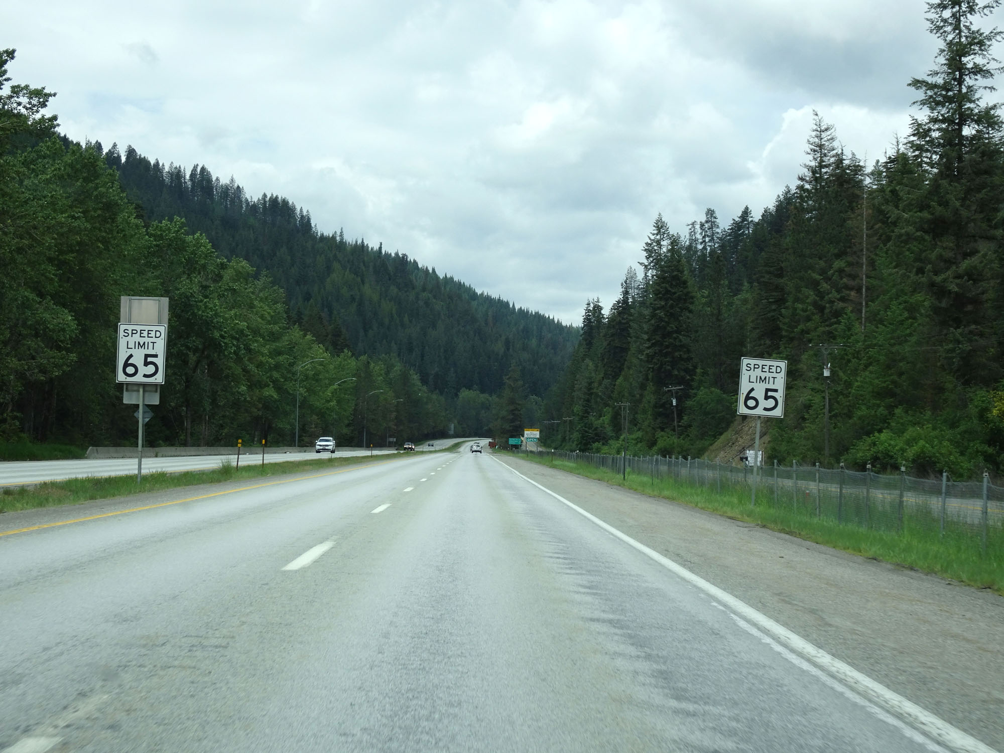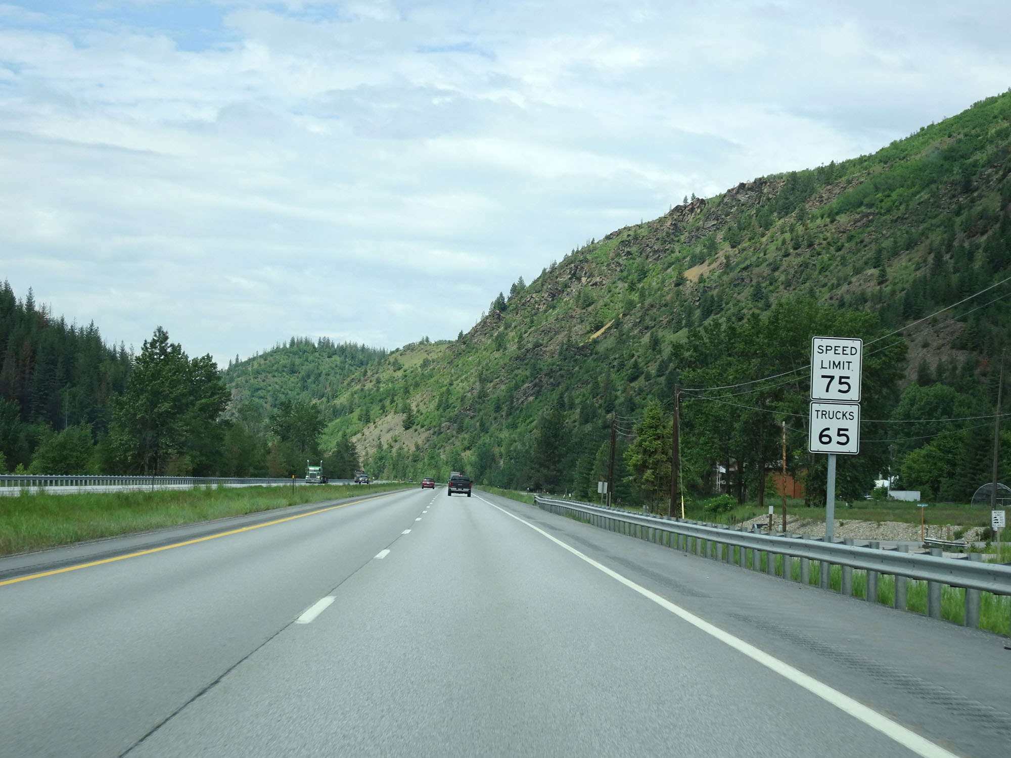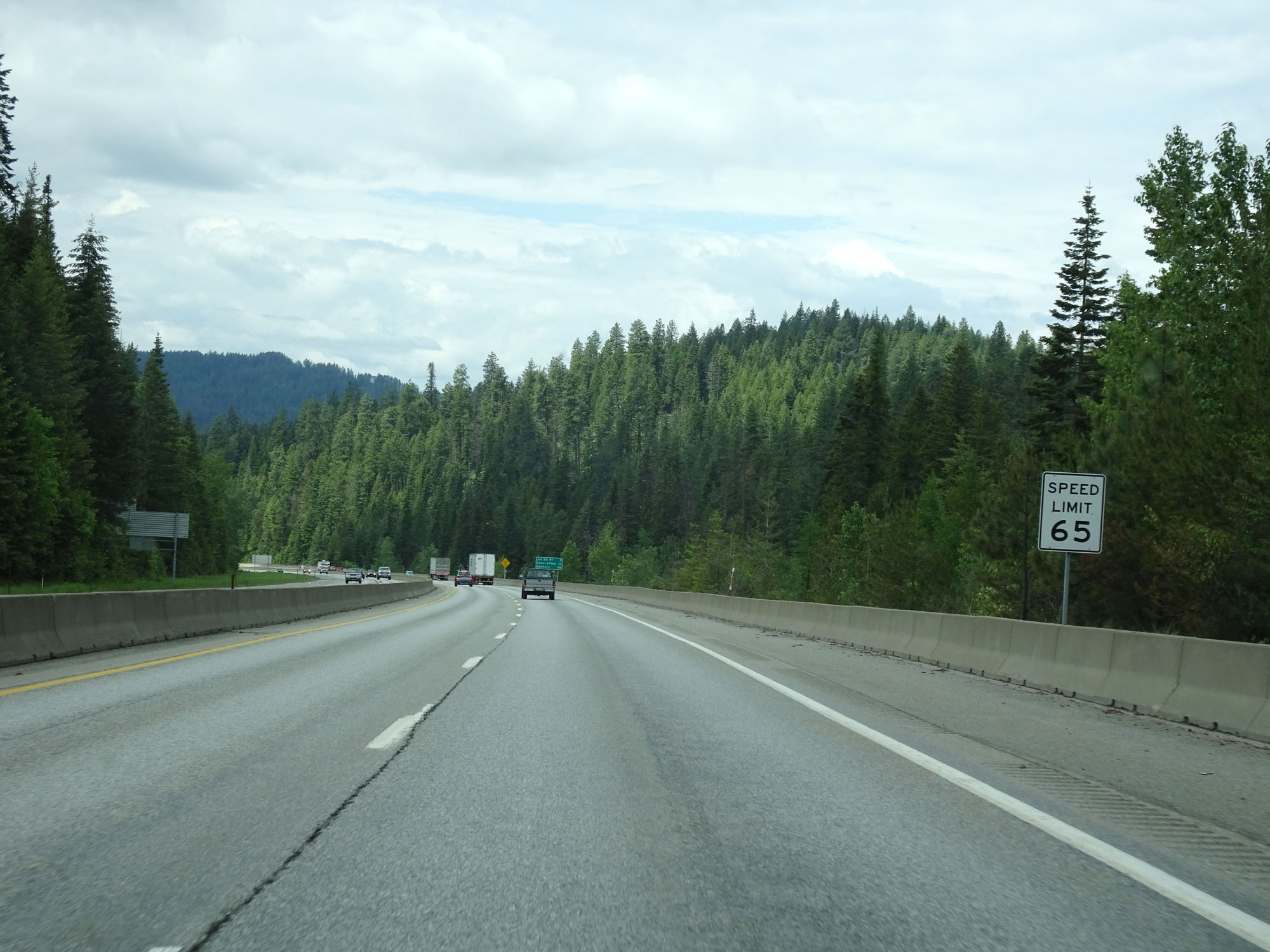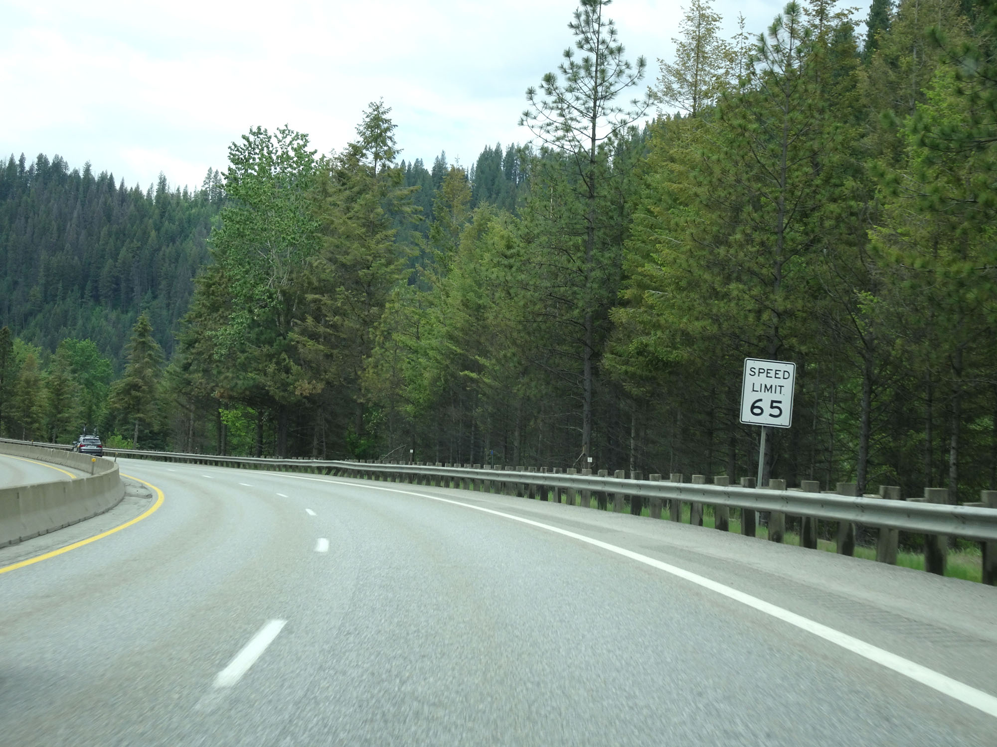 |  | As Interstate 90 West nears what is known as 4th of July Pass, the speed limit decreases to 65 mph for all traffic. We're going to be doing a bit of climbing ahead. (Photo taken 5/25/16). |
