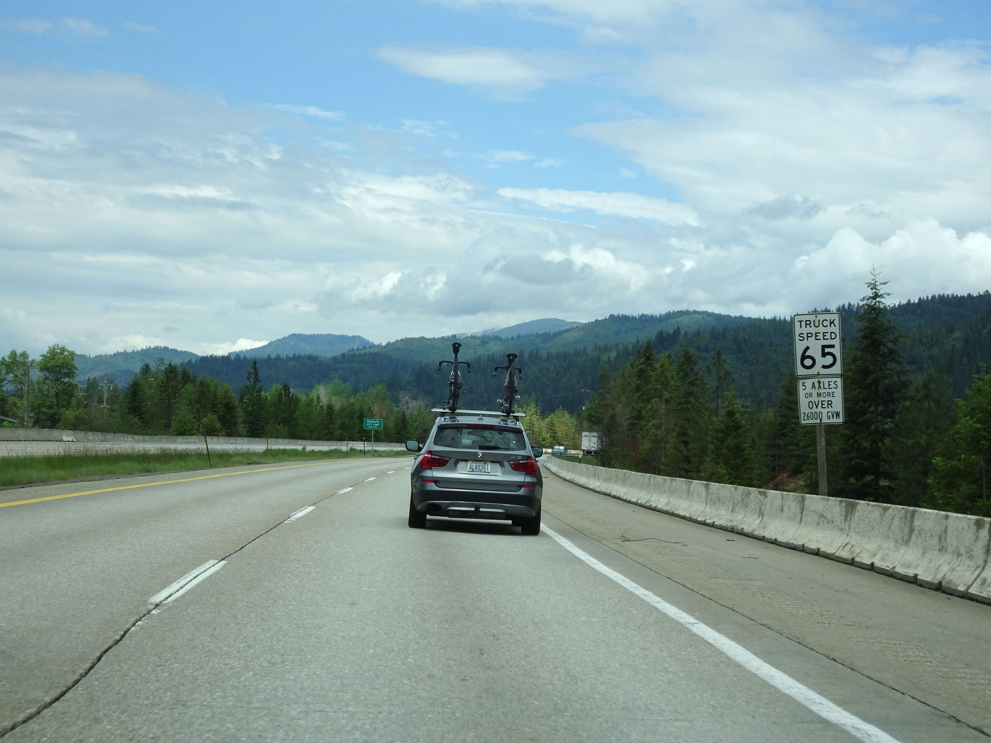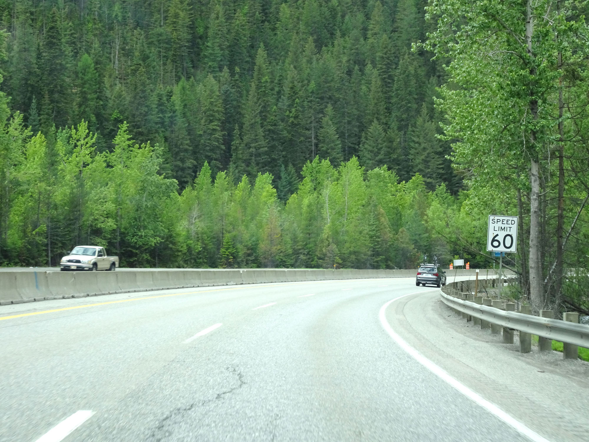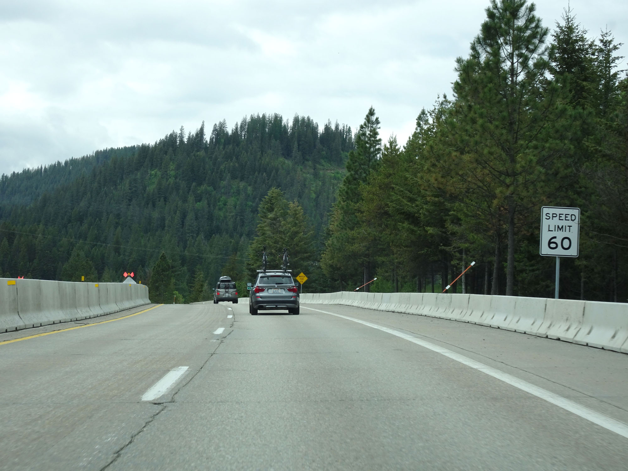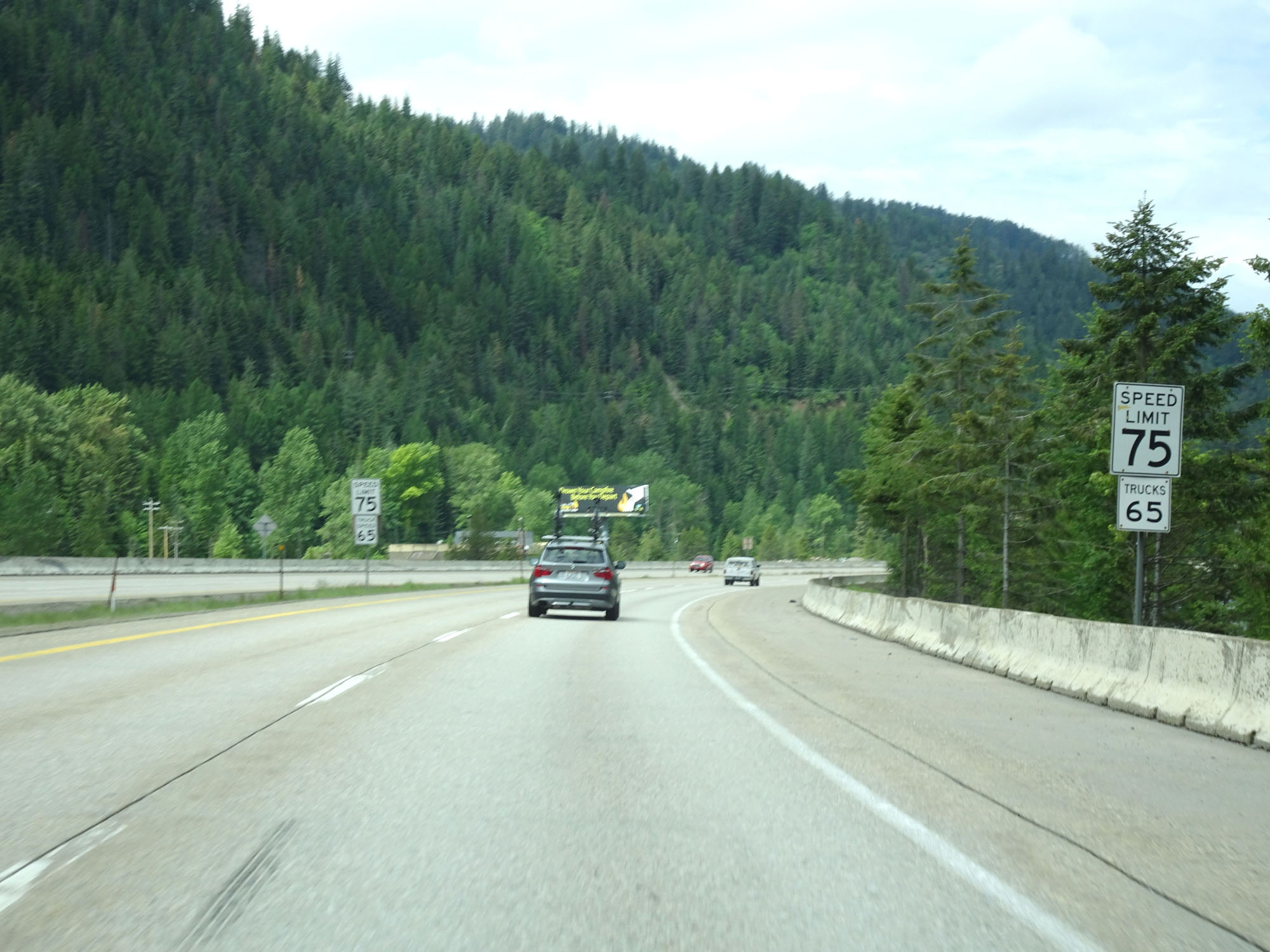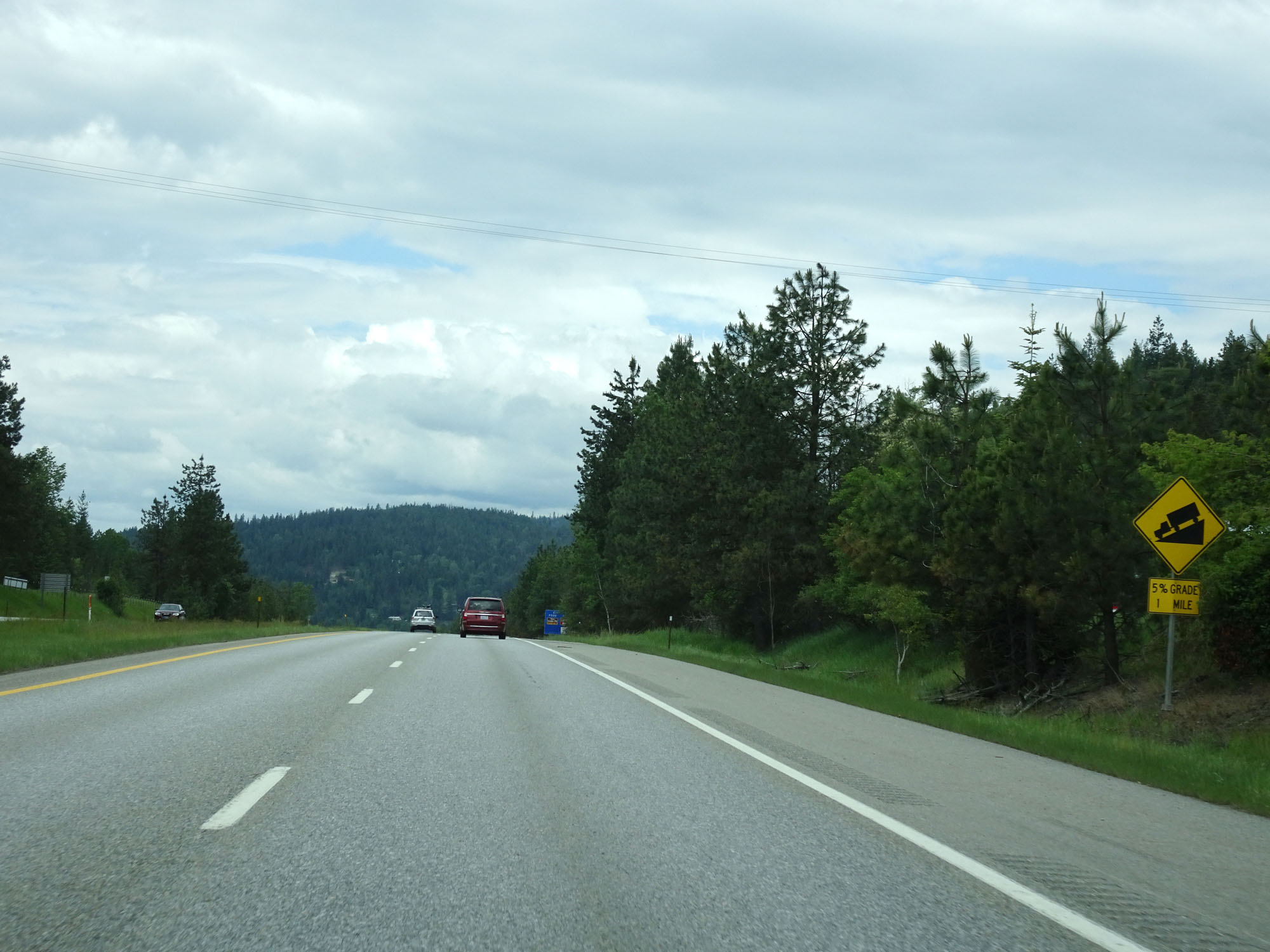 |  | As Interstate 90 West nears what is known as 4th of July Pass, the speed limit decreases to 65 mph for all traffic. We're going to be doing a bit of climbing ahead. (Photo taken 5/25/16). |