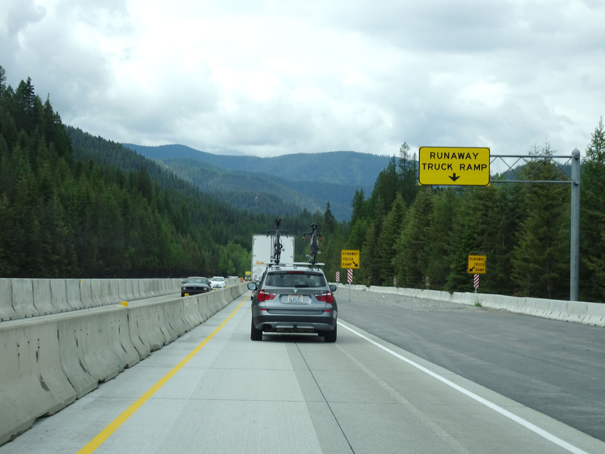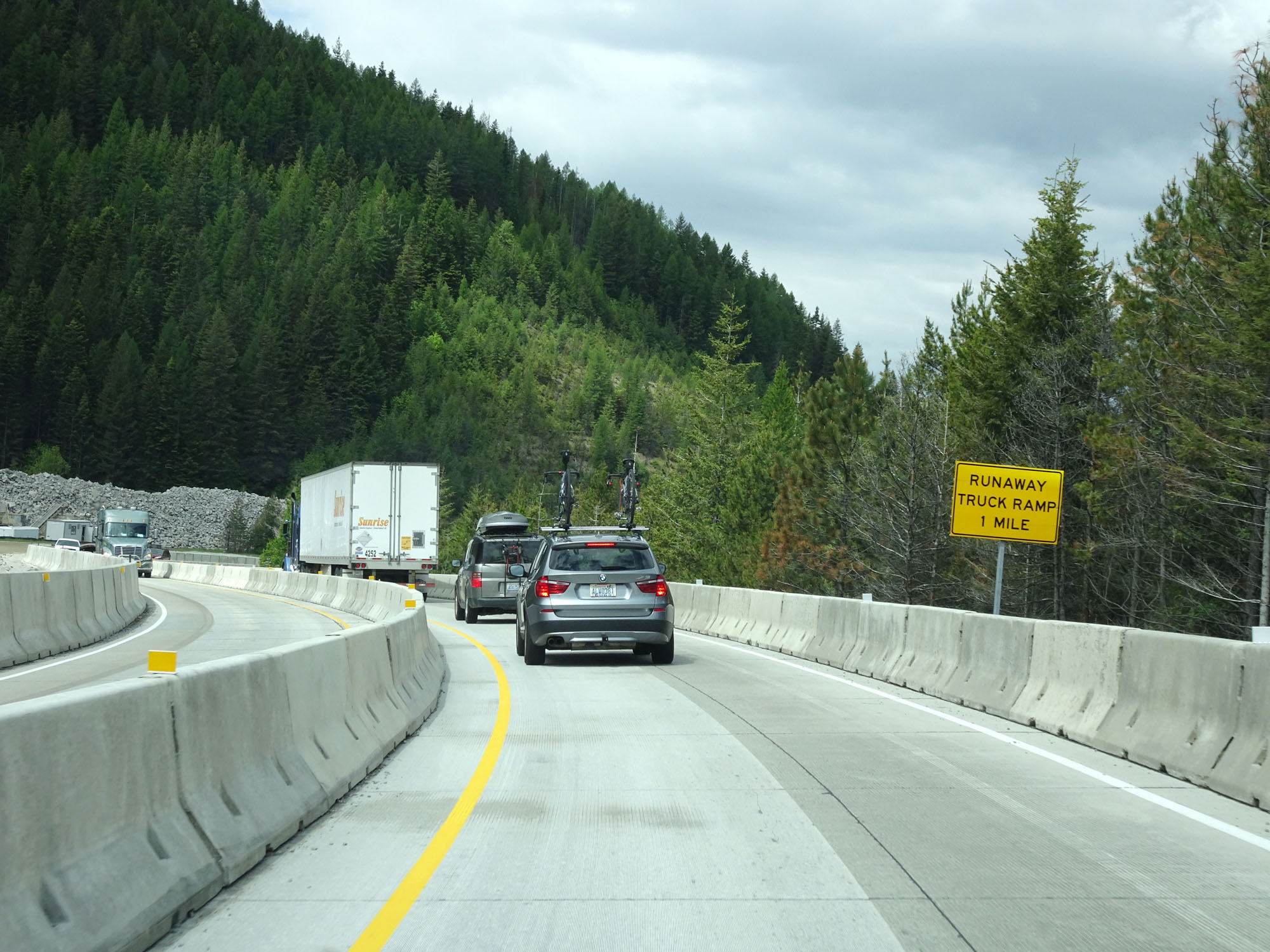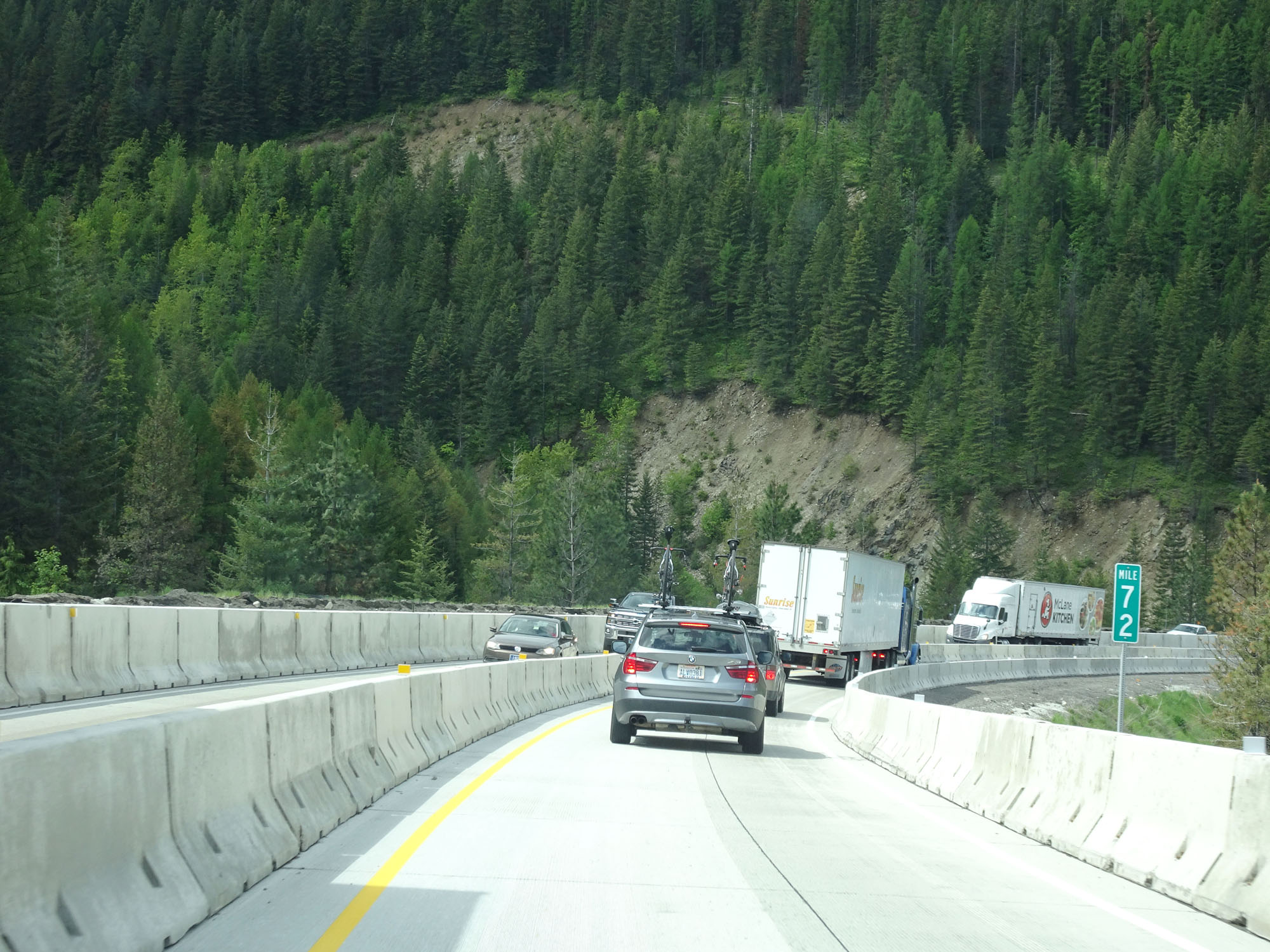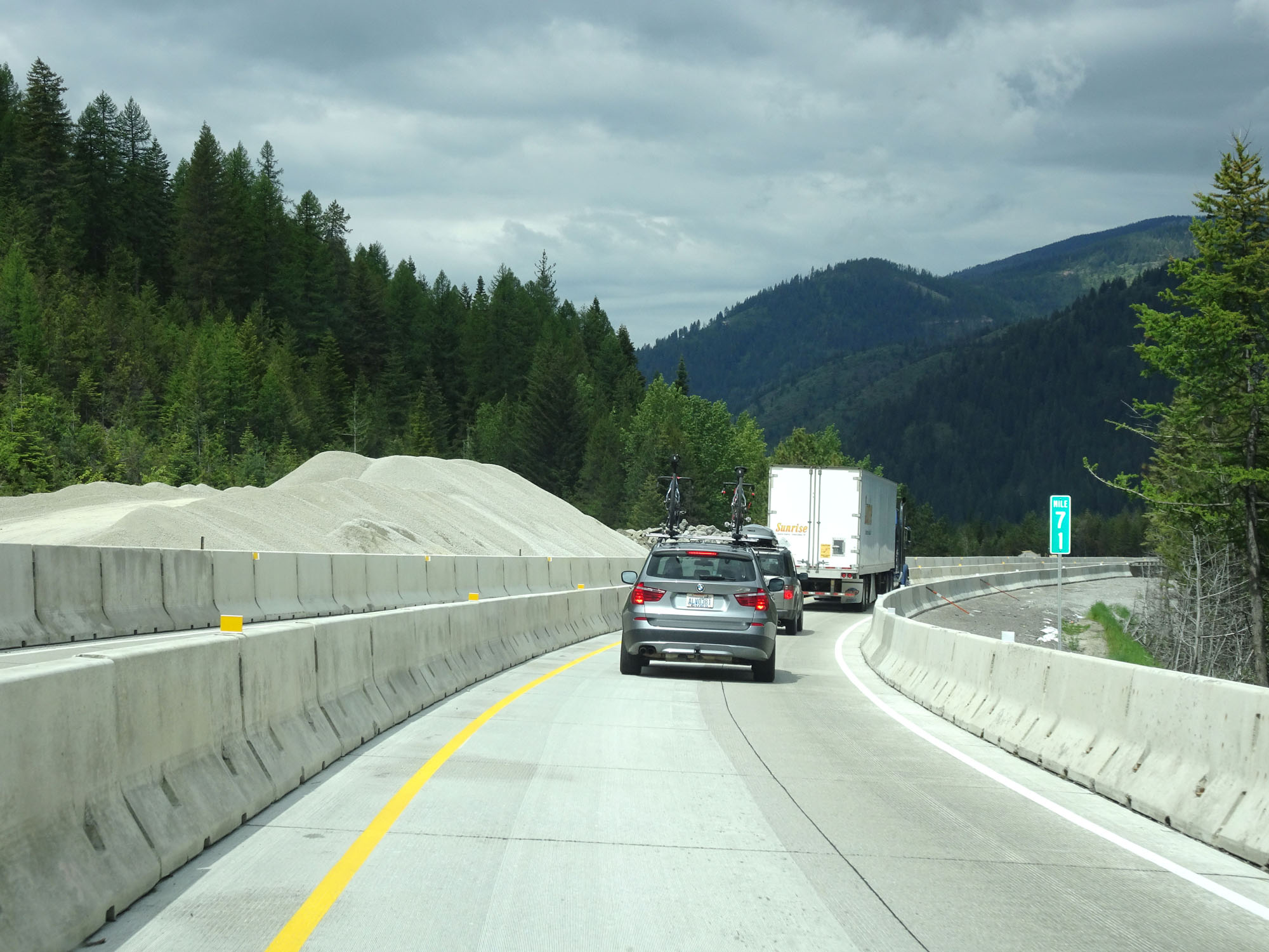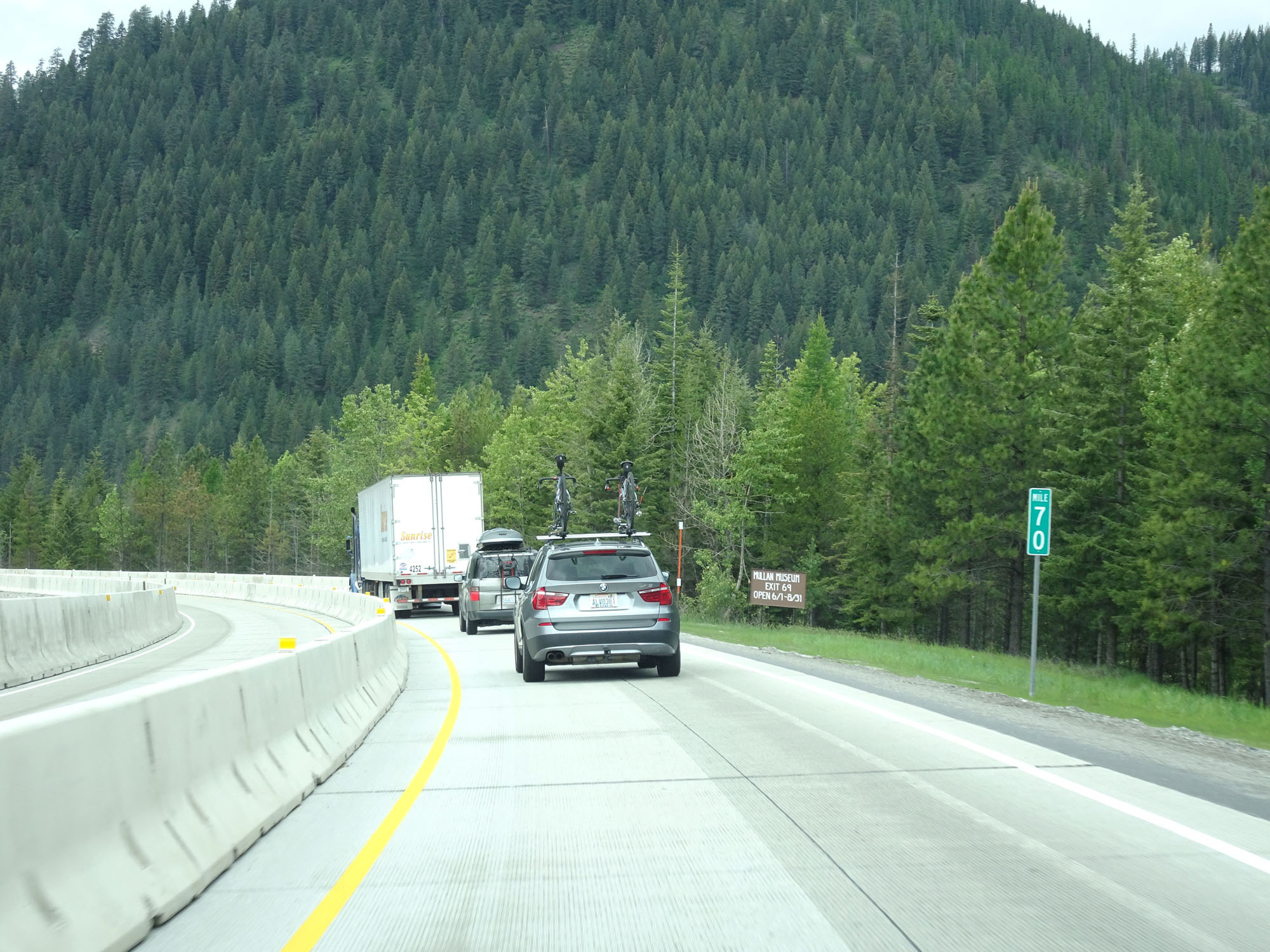 |  | As Interstate 90 West nears what is known as 4th of July Pass, the speed limit decreases to 65 mph for all traffic. We're going to be doing a bit of climbing ahead. (Photo taken 5/25/16). |