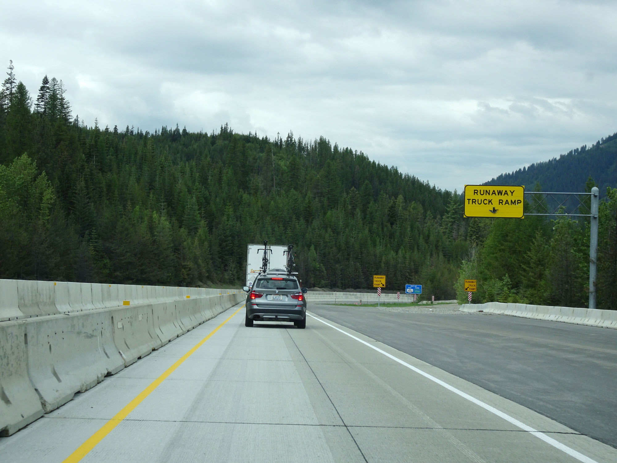 |  | The speed limit remains 65 mph for all traffic on Interstate 90 West heading down the west side of 4th of July Pass. (Photo taken 5/25/16). |