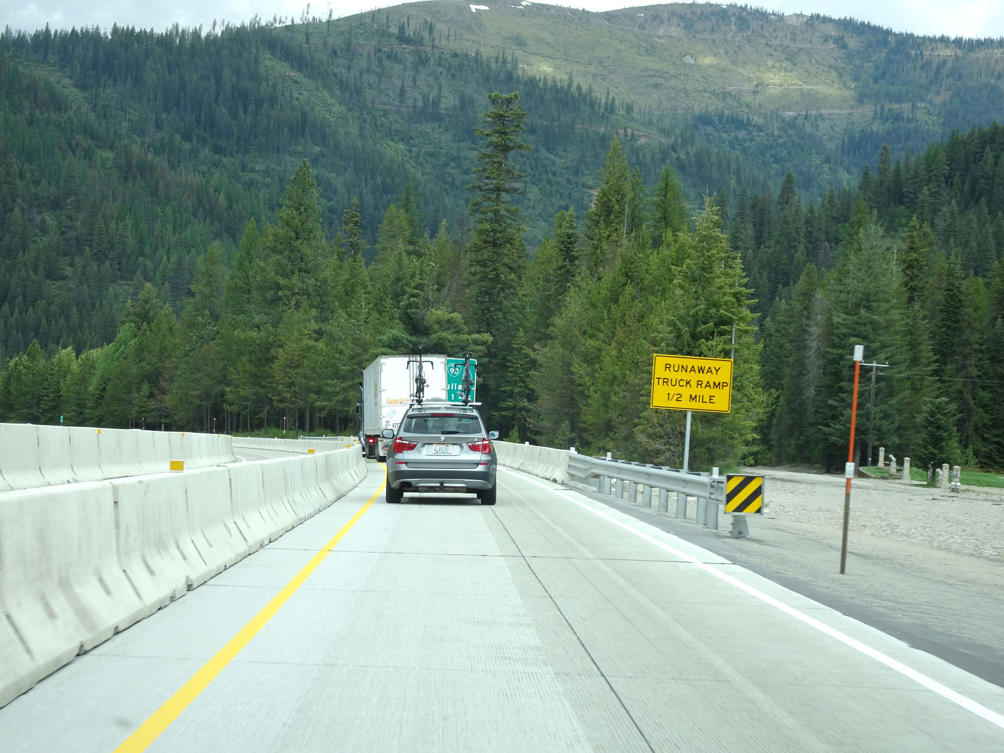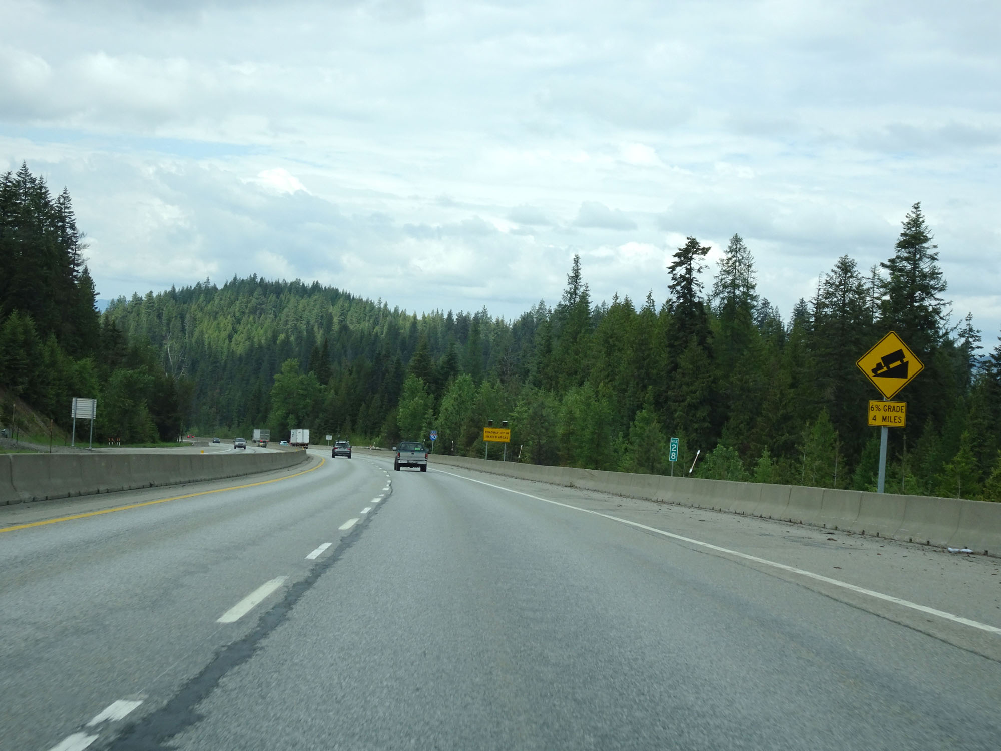 |  | Interstate 90 West begins to descend the west side of 4th of July Pass at mile marker 28. The downgrade will be a 6% grade which lasts for the next 4 miles. (Photo taken 5/25/16). |