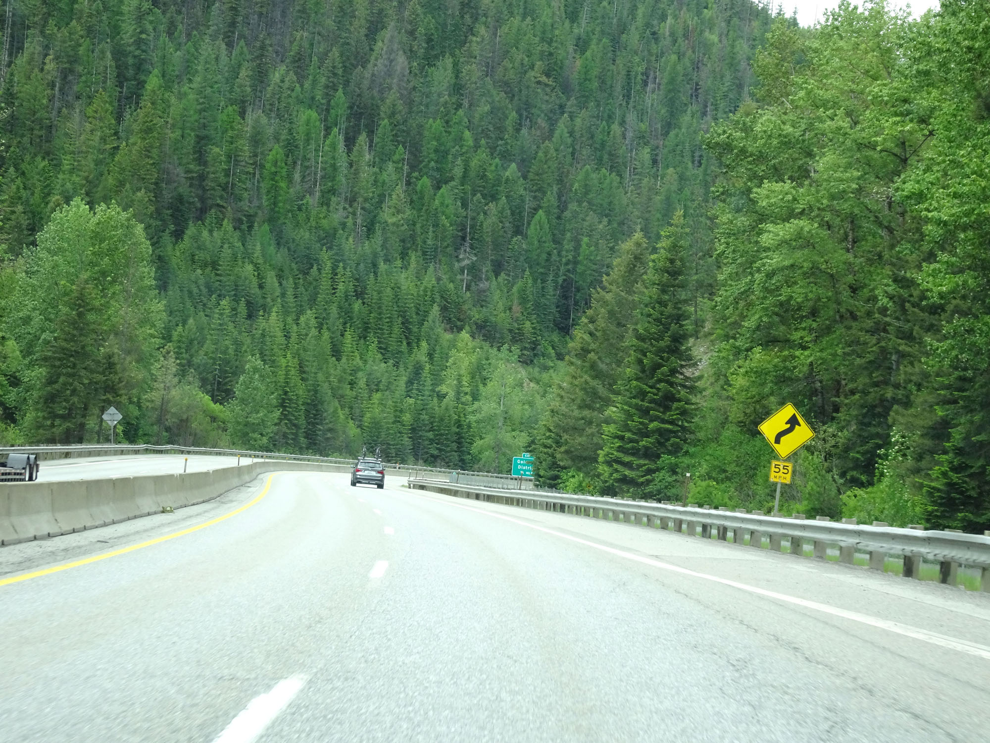 |  | More 55 mph curves exist ahead as Interstate 90 West makes its climb. (Photo taken 5/25/16). |