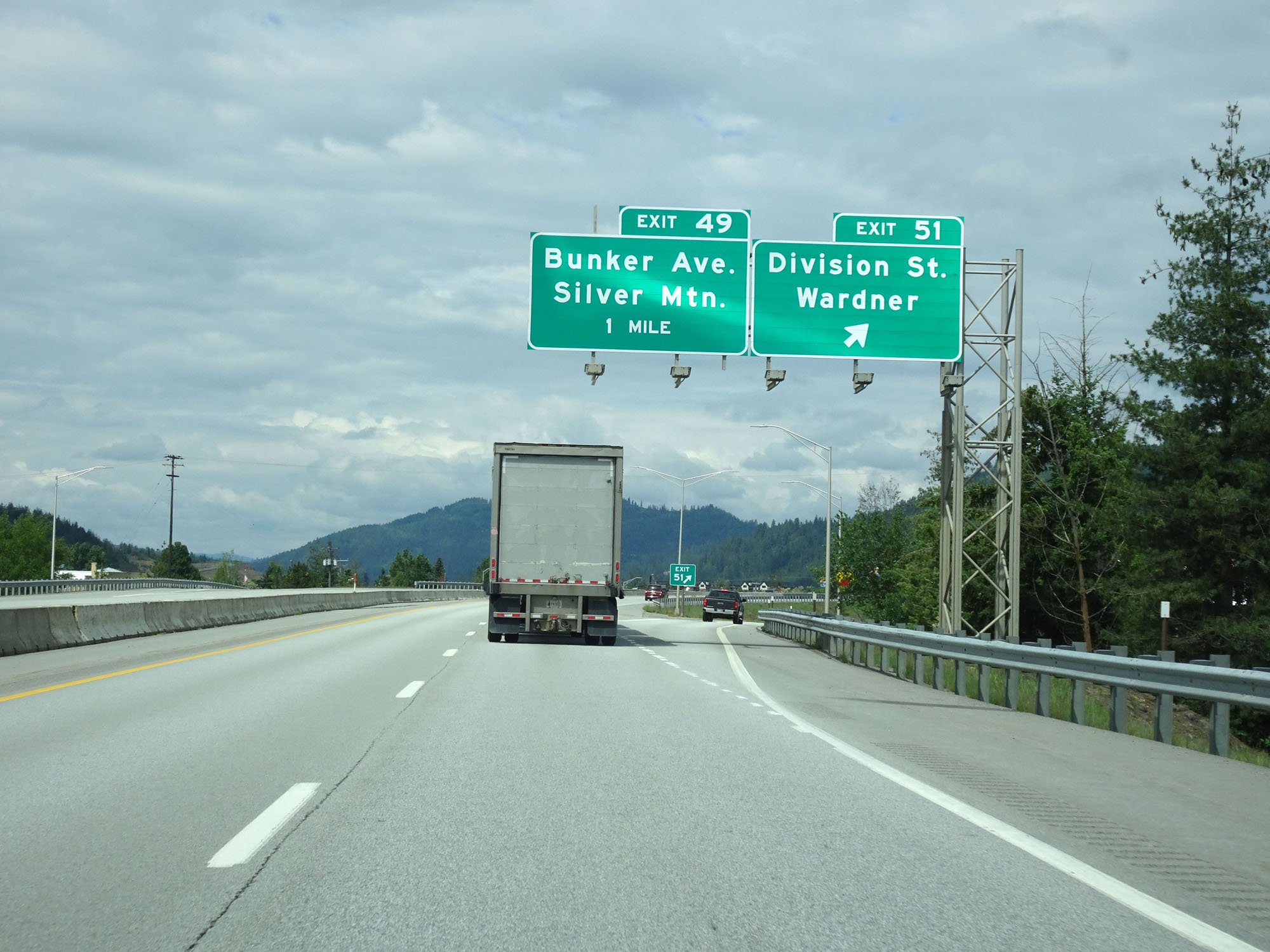 |  | Interstate 90 West at Exit 49: Bunker Ave / Silver Mountain (Photo taken 5/25/16). |