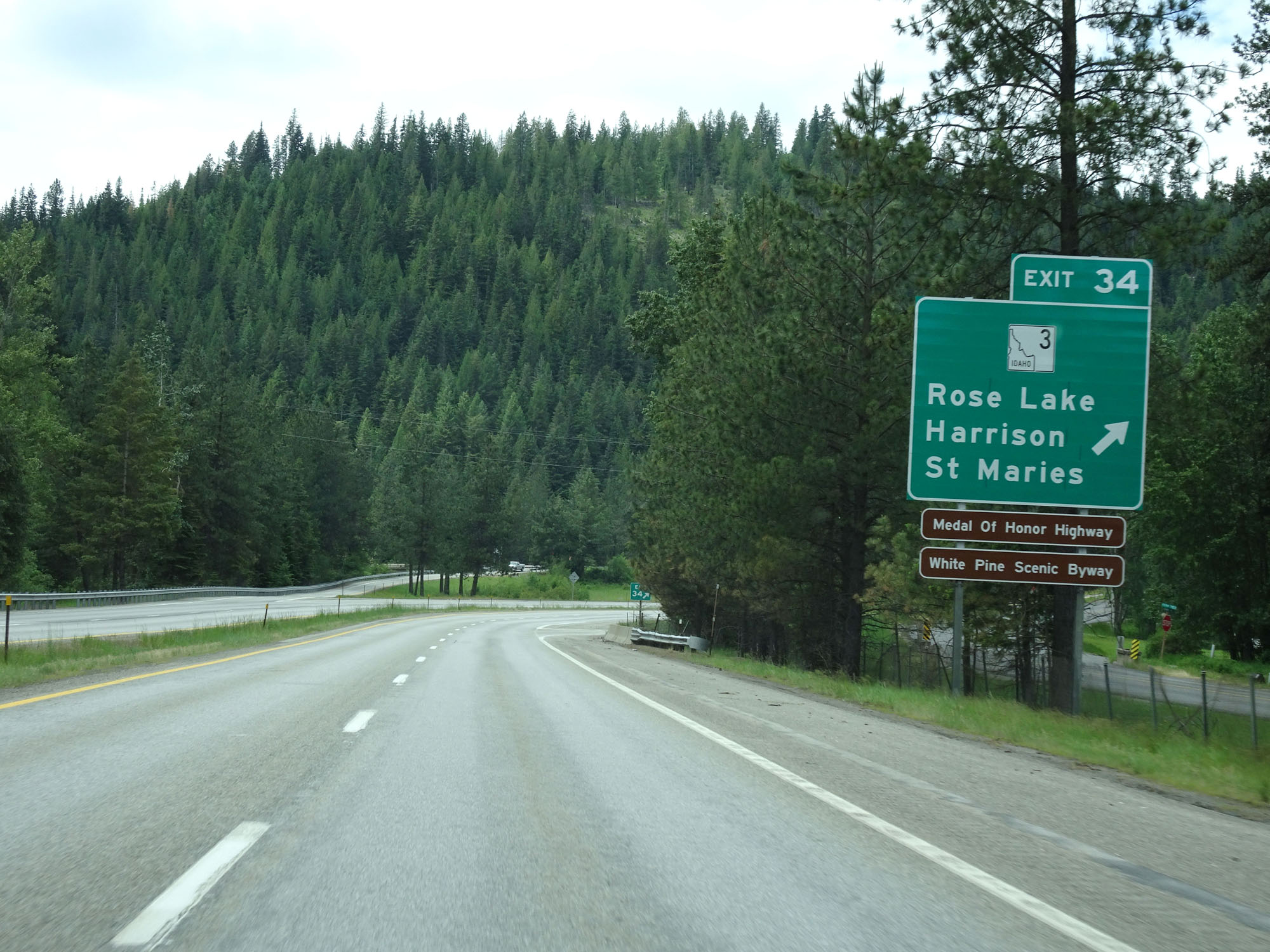 |  | Interstate 90 West at Exit 34: ID 3 - Rose Lake / Harrison / St Maries (Photo taken 5/25/16). |