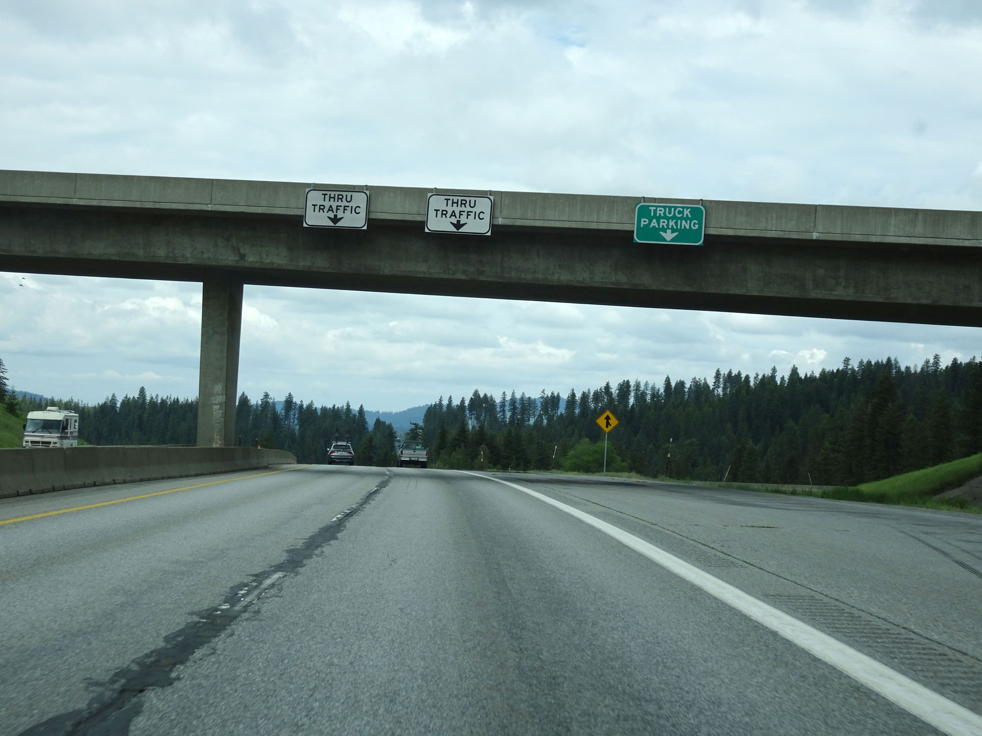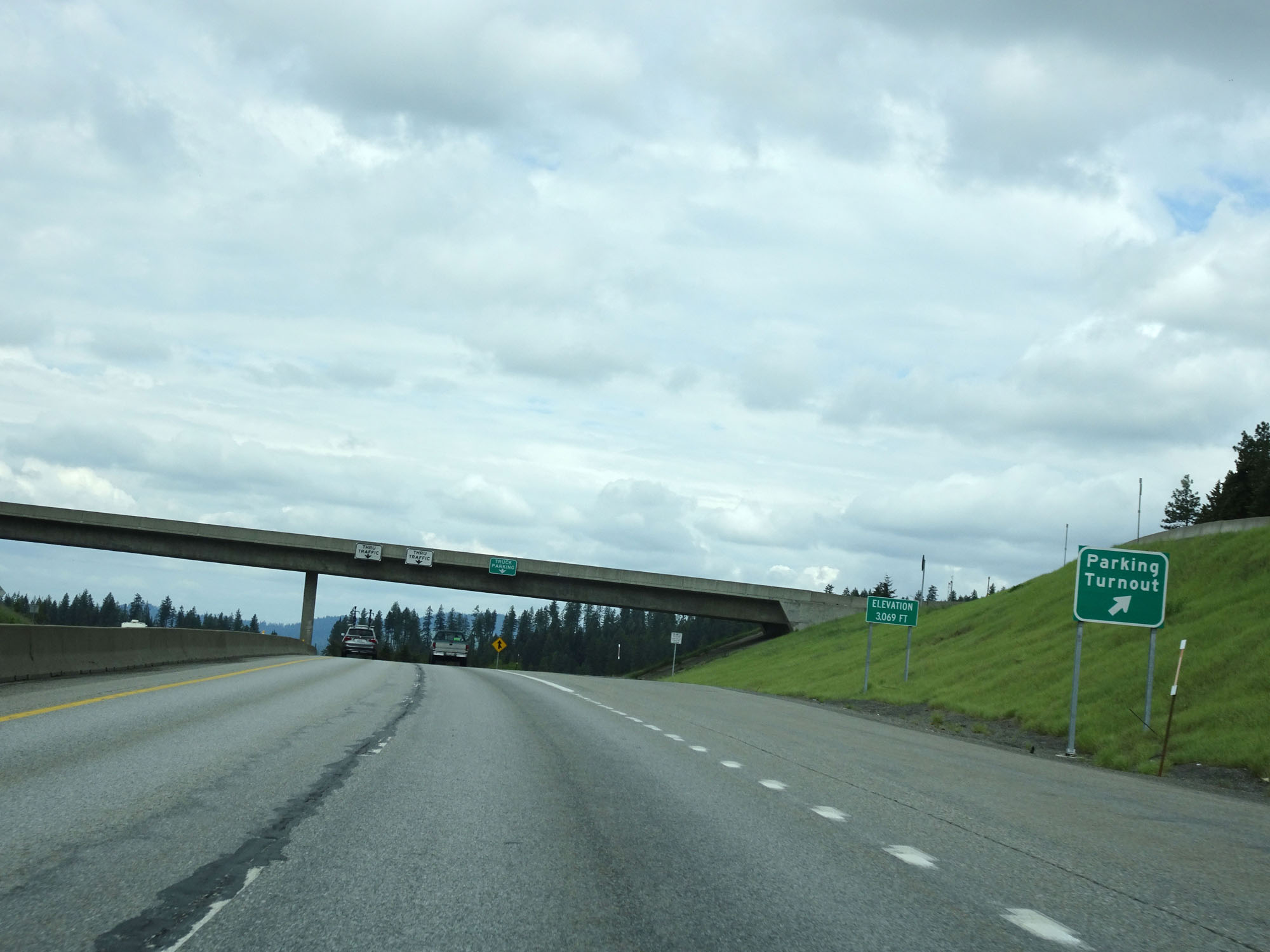 |  | Interstate 90 West as it reaches the summit of 4th of July Pass at an elevation of 3,069 feet. A Parking Turnout exists at the summit for trucks to check their brakes before heading down the long, steep grade ahead. (Photo taken 5/25/16). |