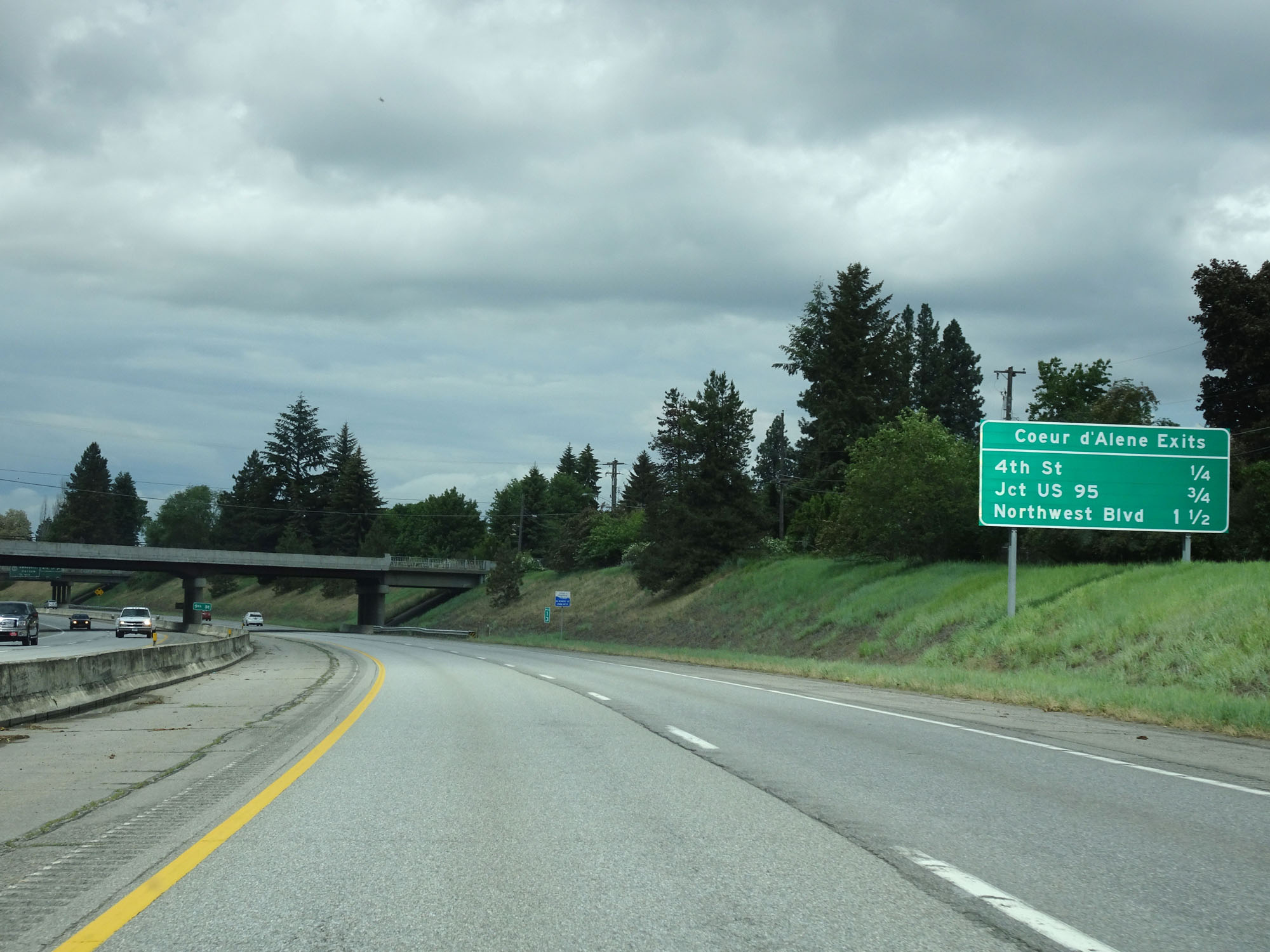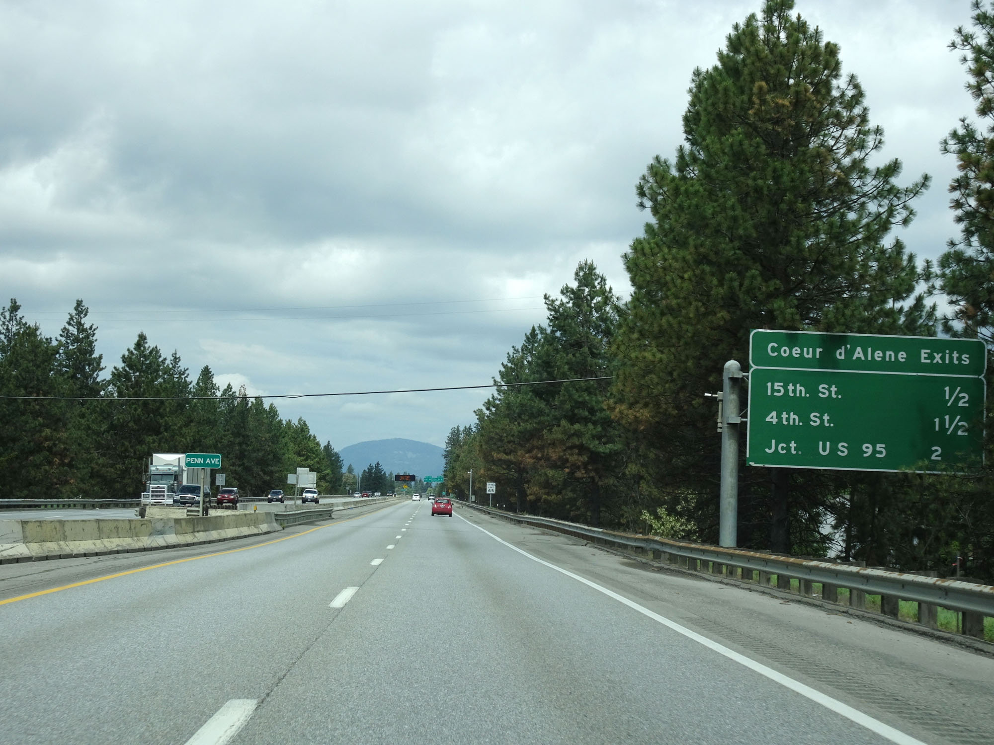 |  | Interstate 90 West as it enters the Coeur d'Alene city limits. (Photo taken 5/25/16). |