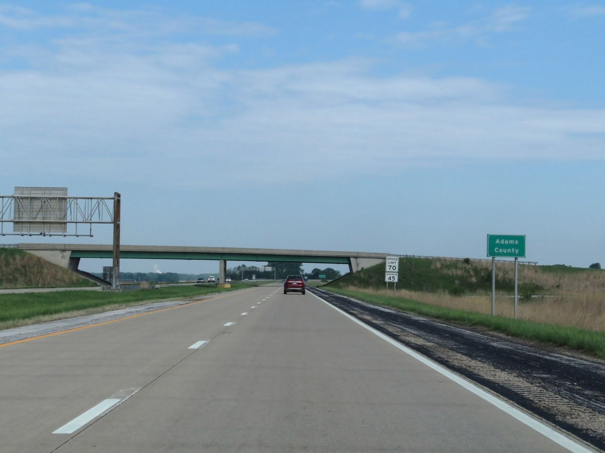 Shortly after its northbound beginning, Interstate 172 enters Adams County where it will remain for the rest of its duration. (Photo taken 5/16/18). |