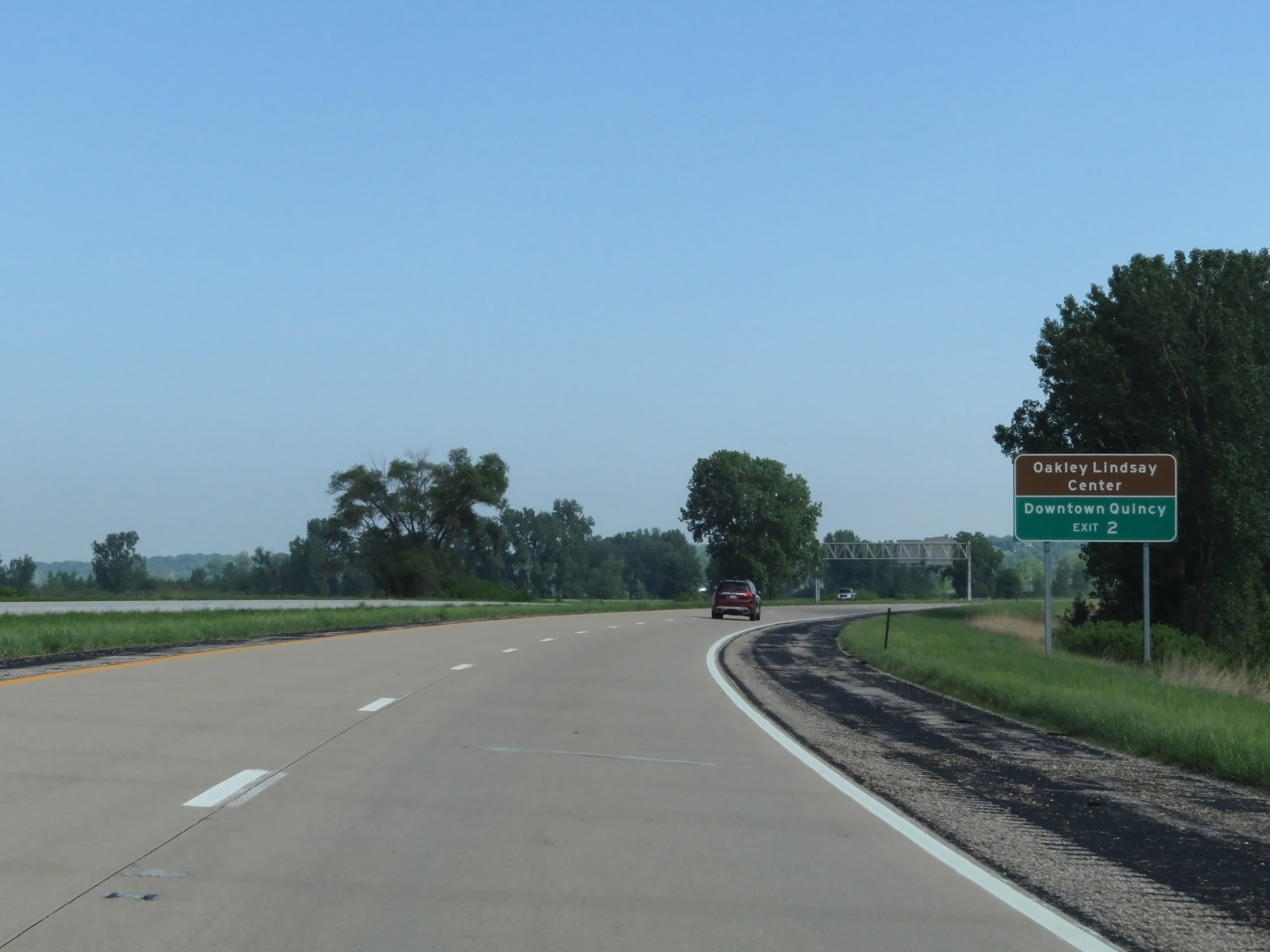 Take Exit 2 to Oakley Lindsay Center and Downtown Quincy. (Photo taken 5/16/18). |