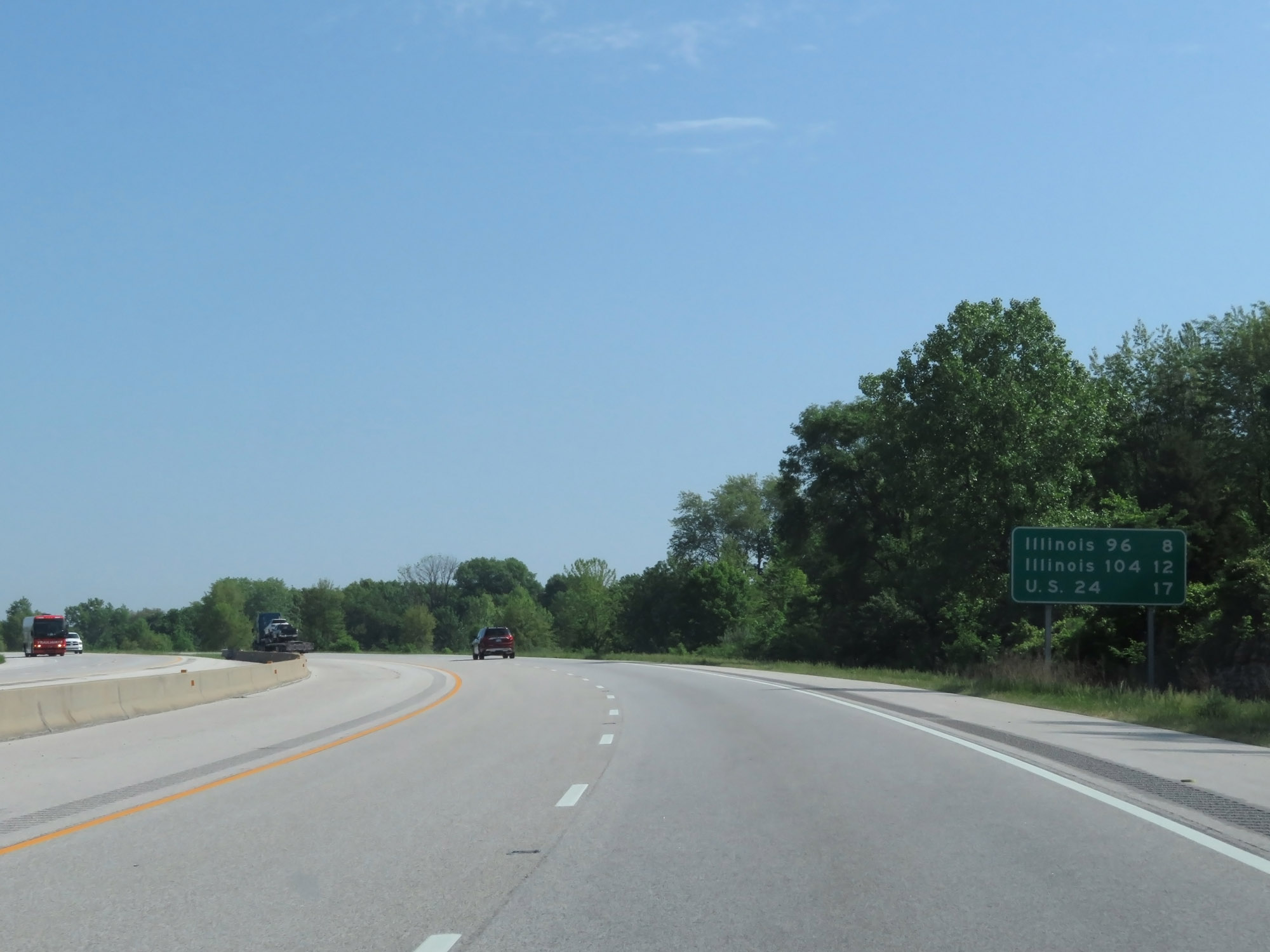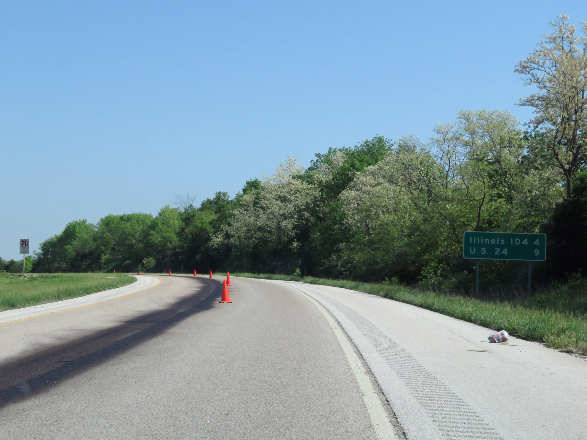 Interstate 172 North at Exit 14: IL 104 - Broadway (Photo taken 5/16/18). |
