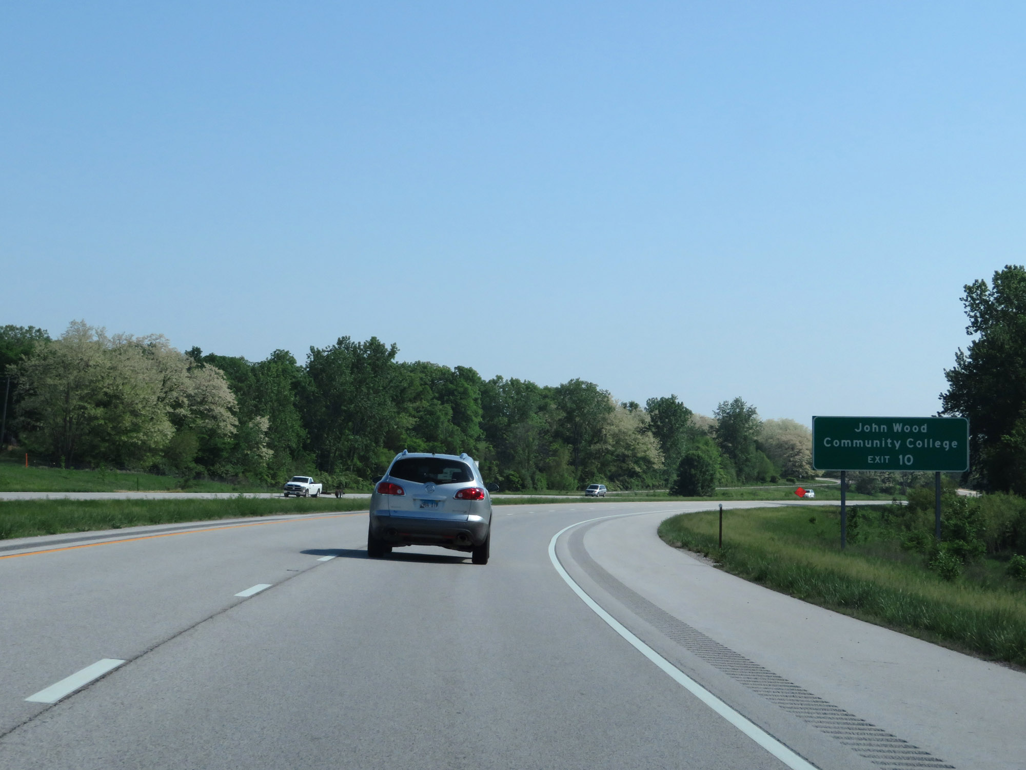 Take Exit 10 to John Wood Community College. (Photo taken 5/16/18). |