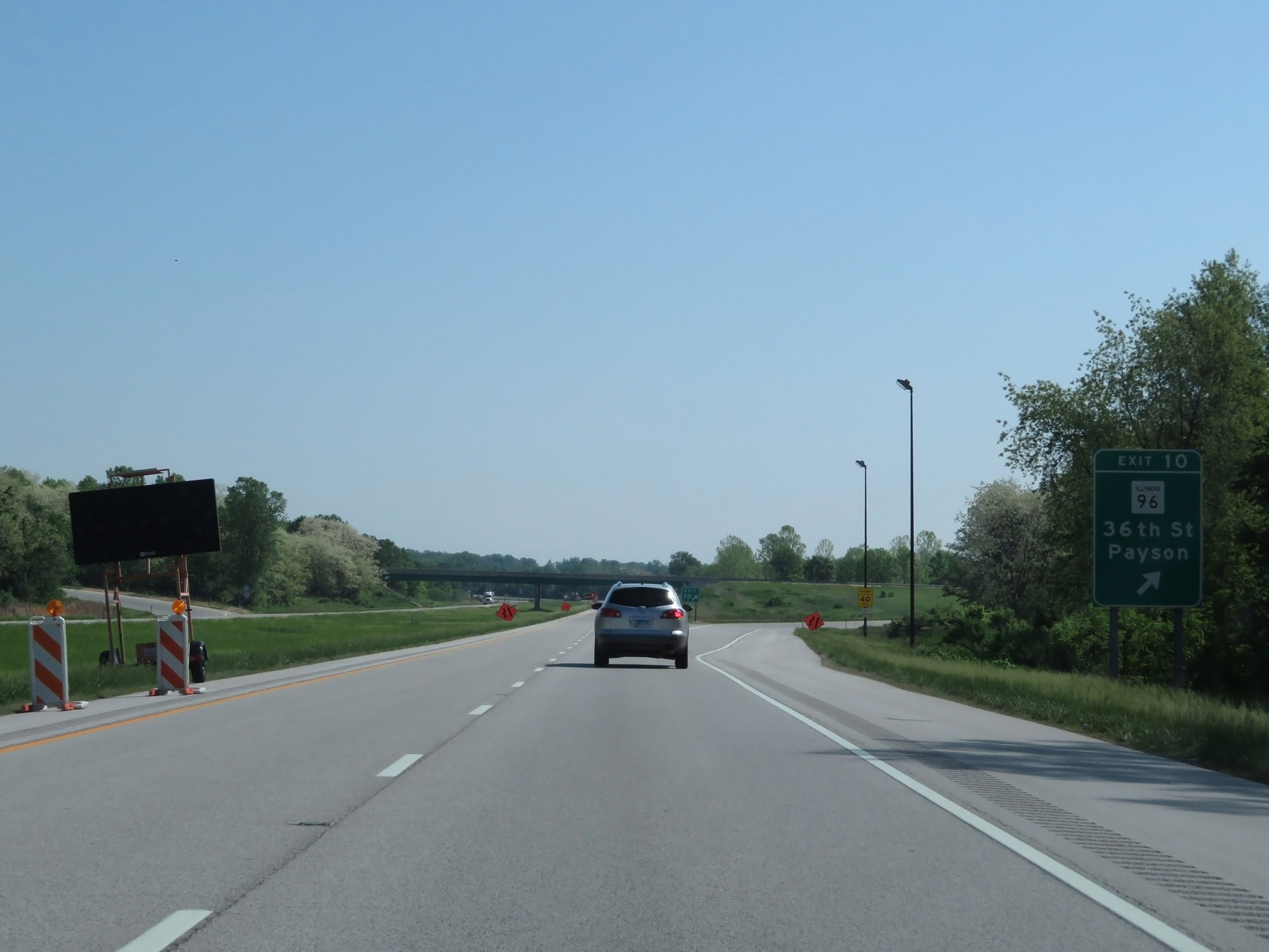 Interstate 172 North at Exit 10: IL 96 - 36th St / Payson (Photo taken 5/16/18). |