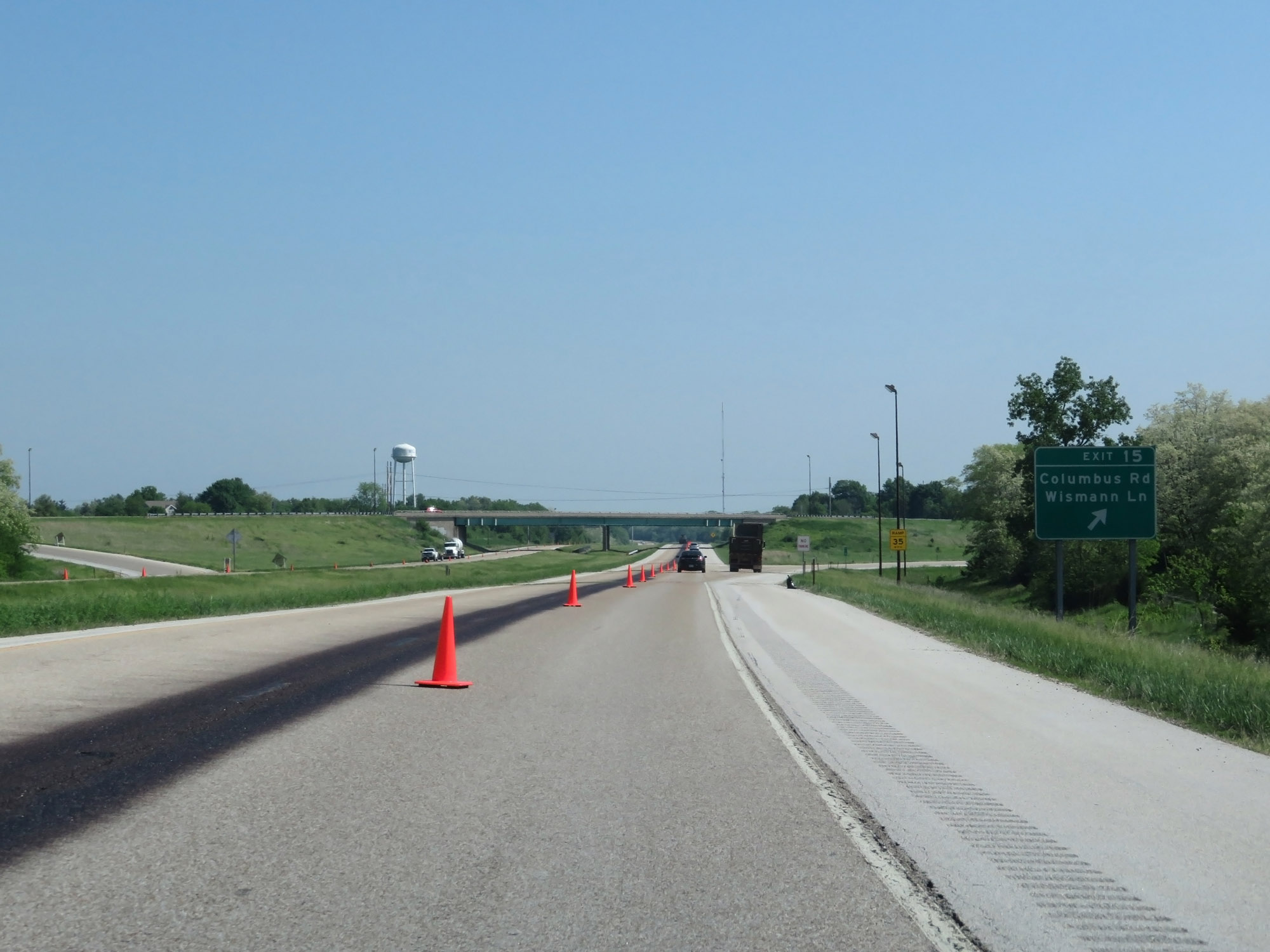 Interstate 172 North at Exit 15: Columbus Rd / Wismann Ln (Photo taken 5/16/18). |