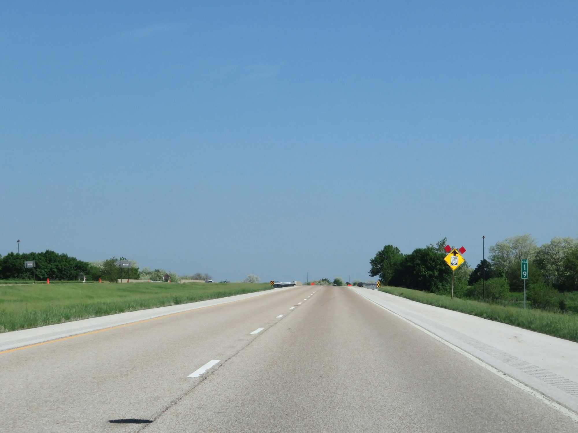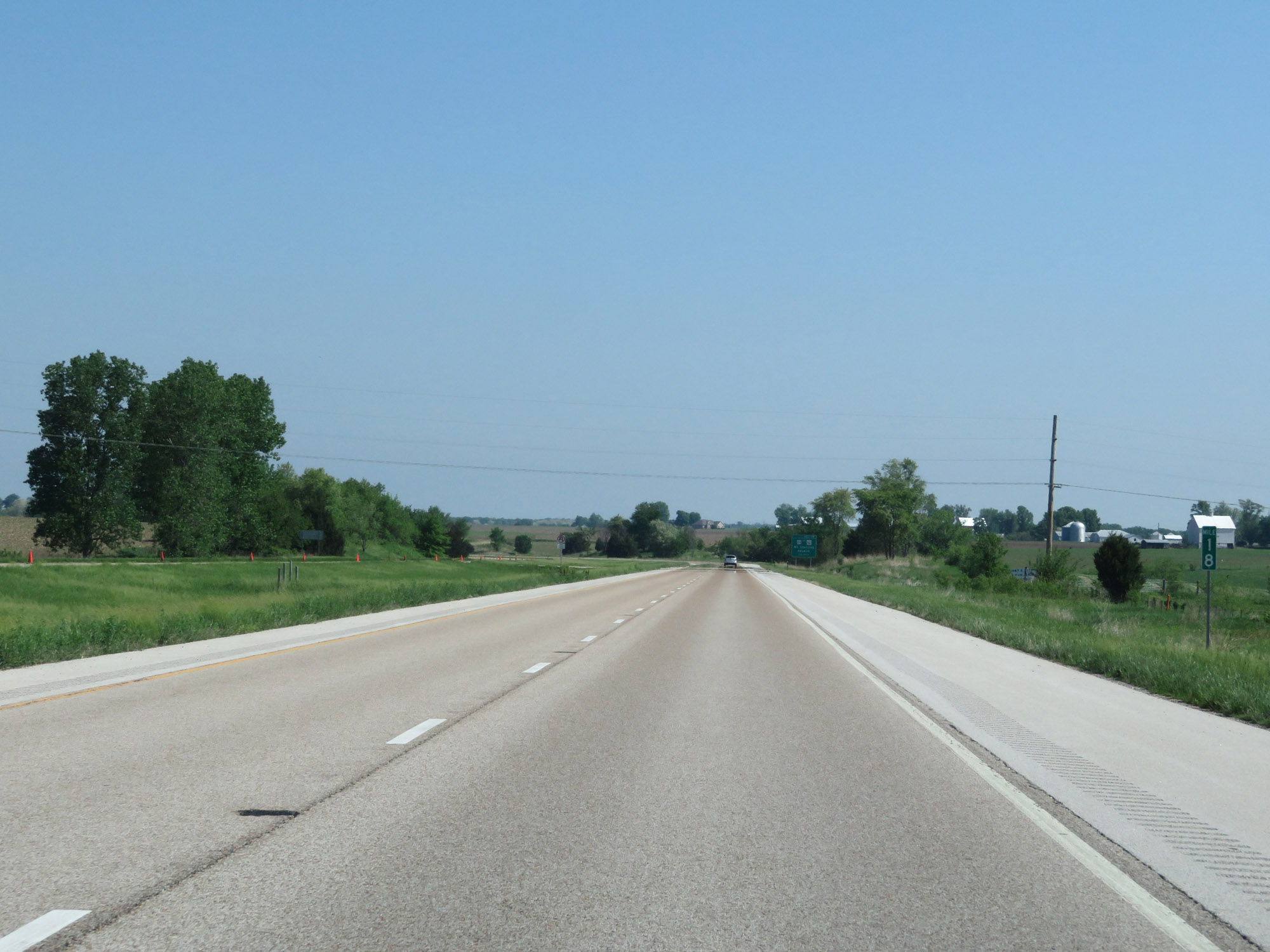 Interstate 172 North at mile marker 19, approaching its northern terminus. (Photo taken 5/16/18). |