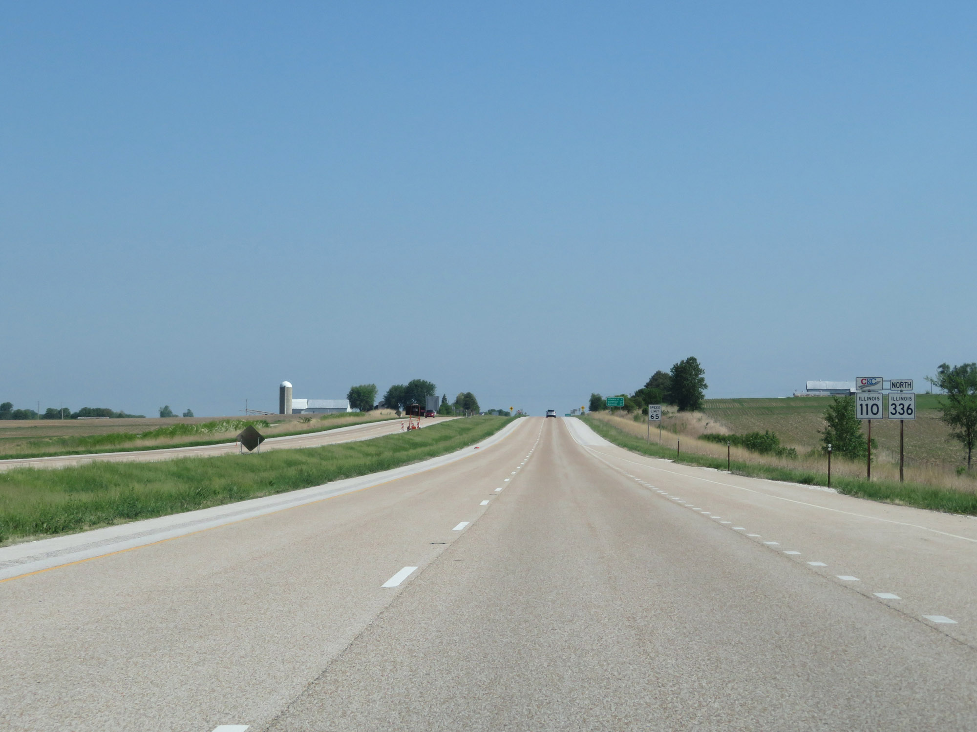 Interstate 172 North at its northern terminus. IL 110 and IL 336 will continue northbound from this point. (Photo taken 5/16/18). |