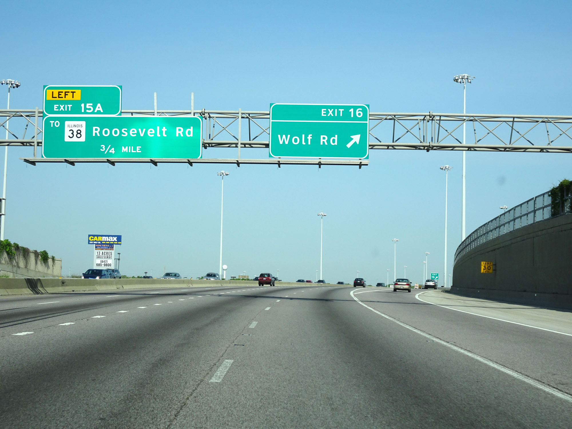 Interstate 290 West at Exit 16: Wolf Rd (Photo taken 5/21/16). |