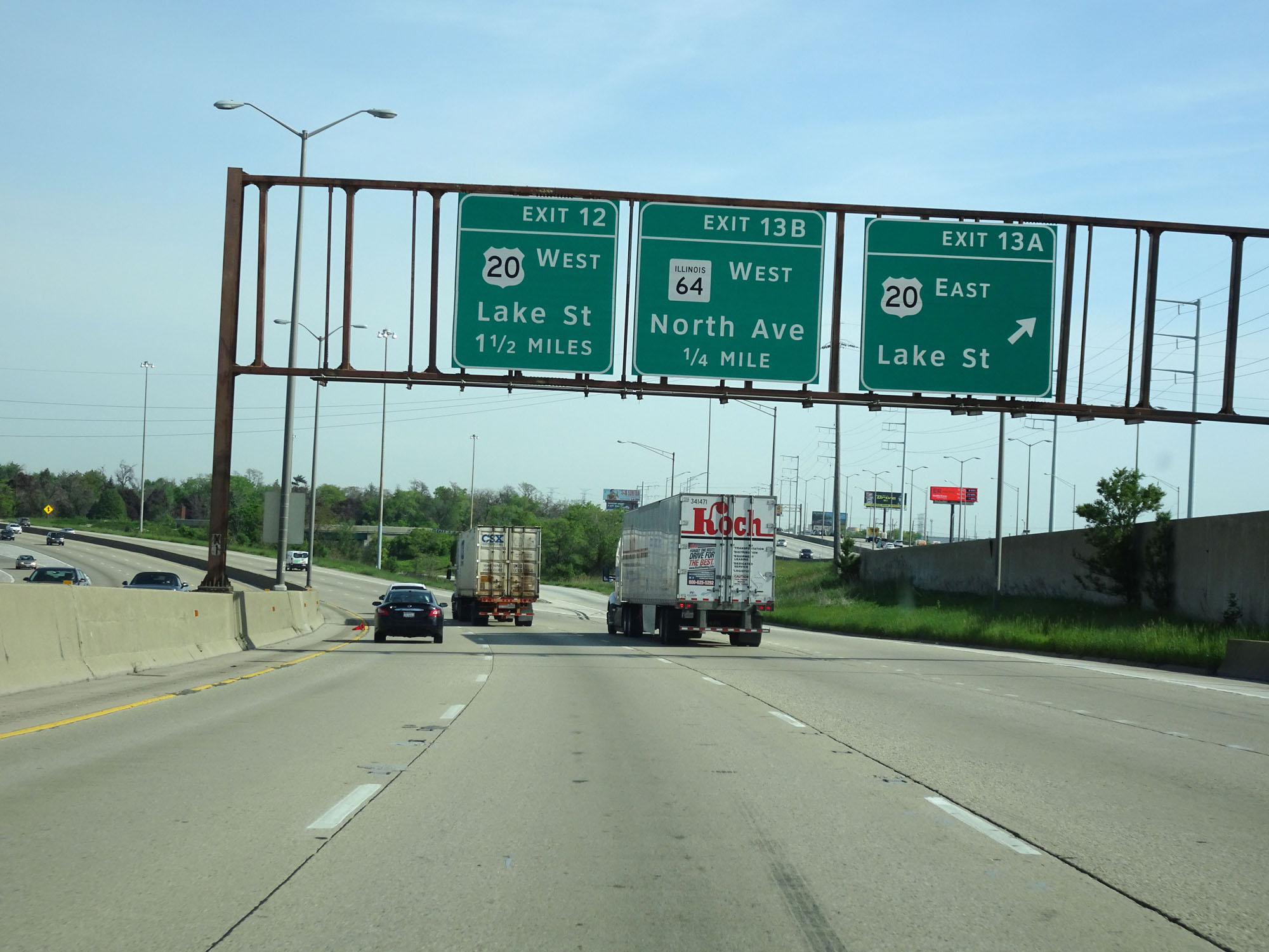 Interstate 290 West at Exit 13A: US 20 East - Lake St (Photo taken 5/21/16). |