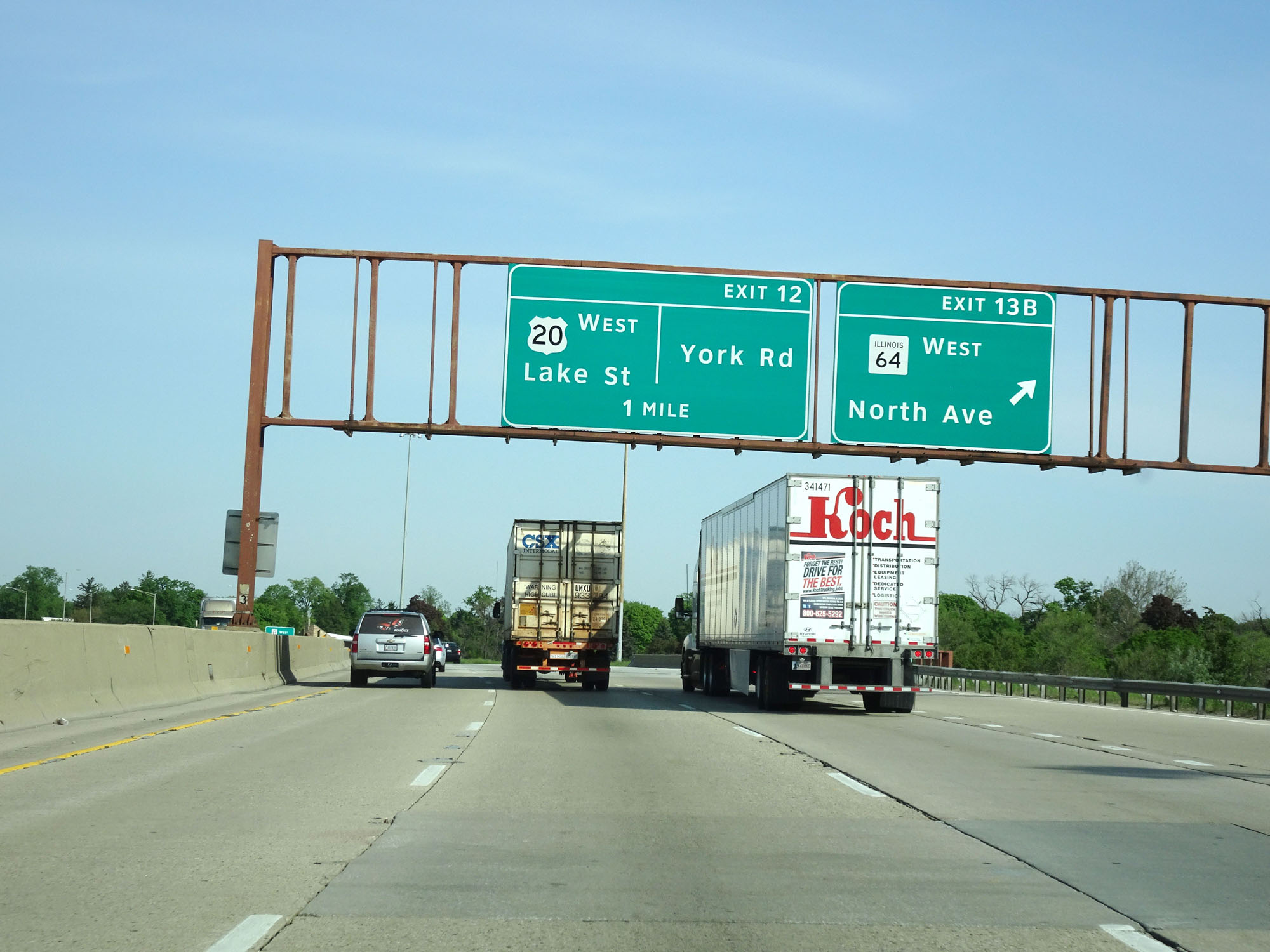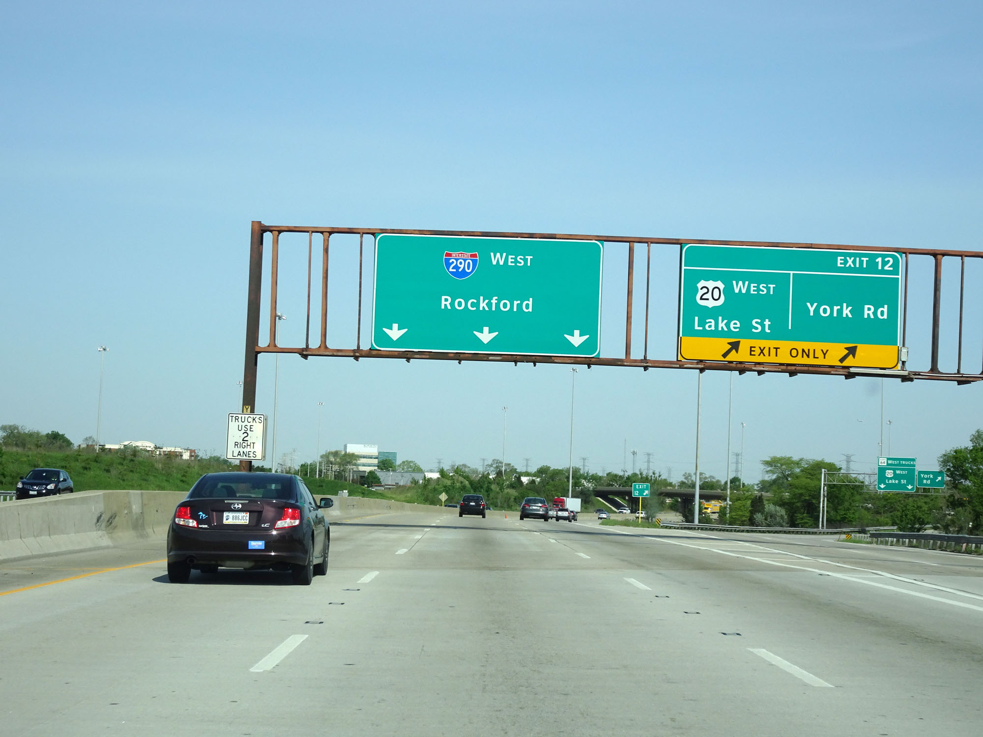 Interstate 290 West at Exit 12: US 20 West - Lake St / York Rd (Photo taken 5/21/16). |