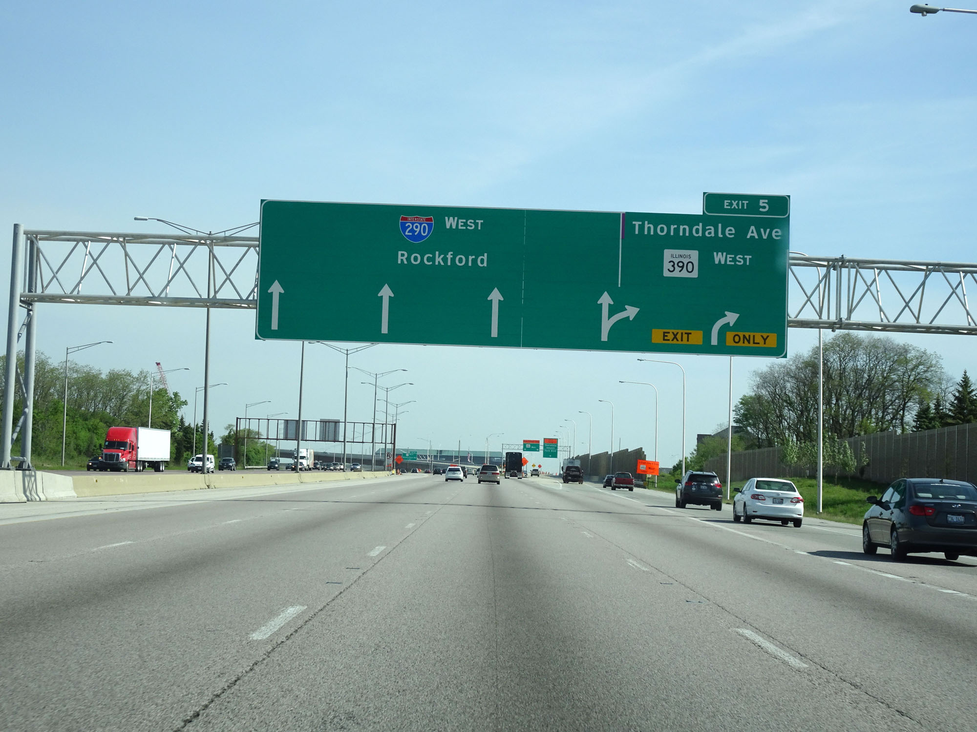 Interstate 290 West at Exit 5: IL 390 West - Thorndale Ave (Photo taken 5/21/16). |