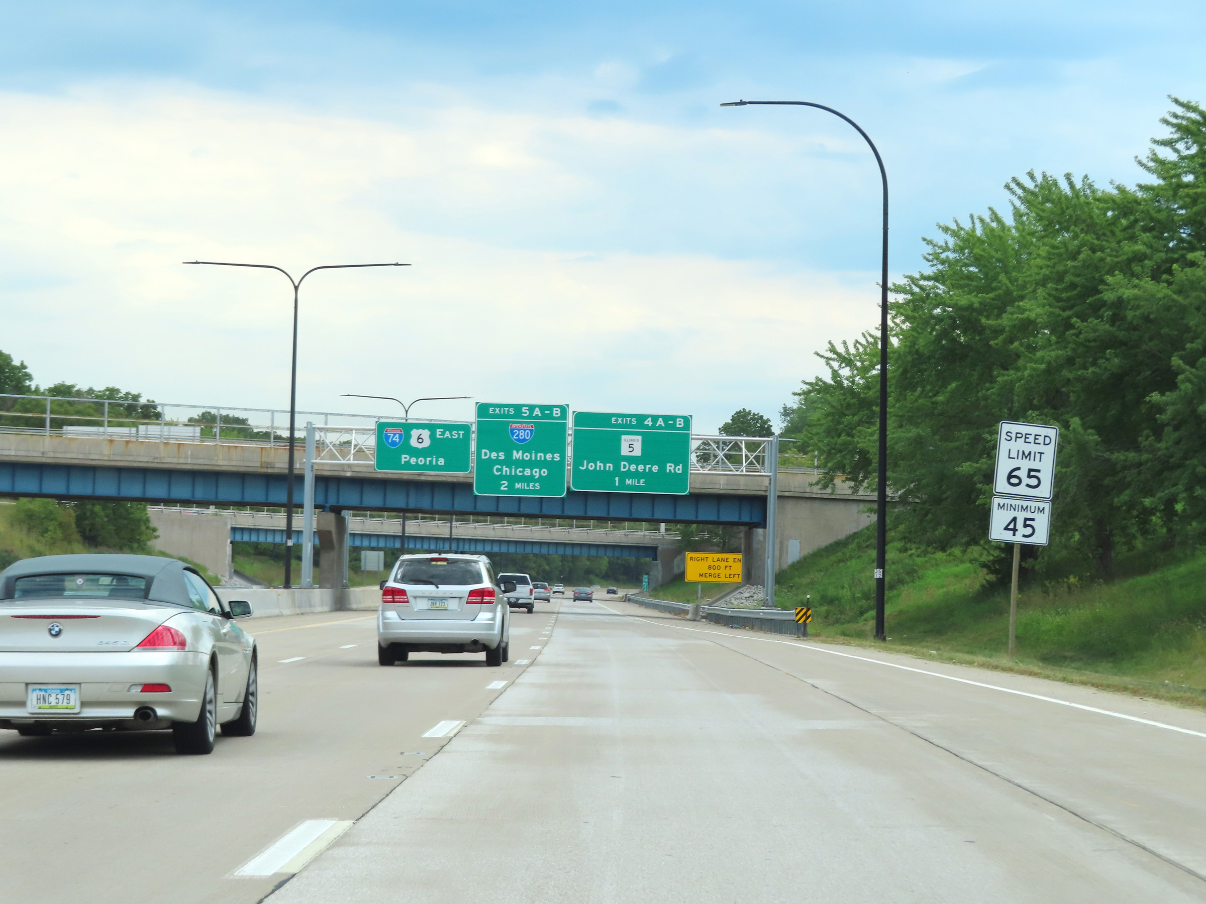 Interstate 74 East at Exit 4B: IL 5 East - John Deere Rd (Photo taken 8/19/22). |