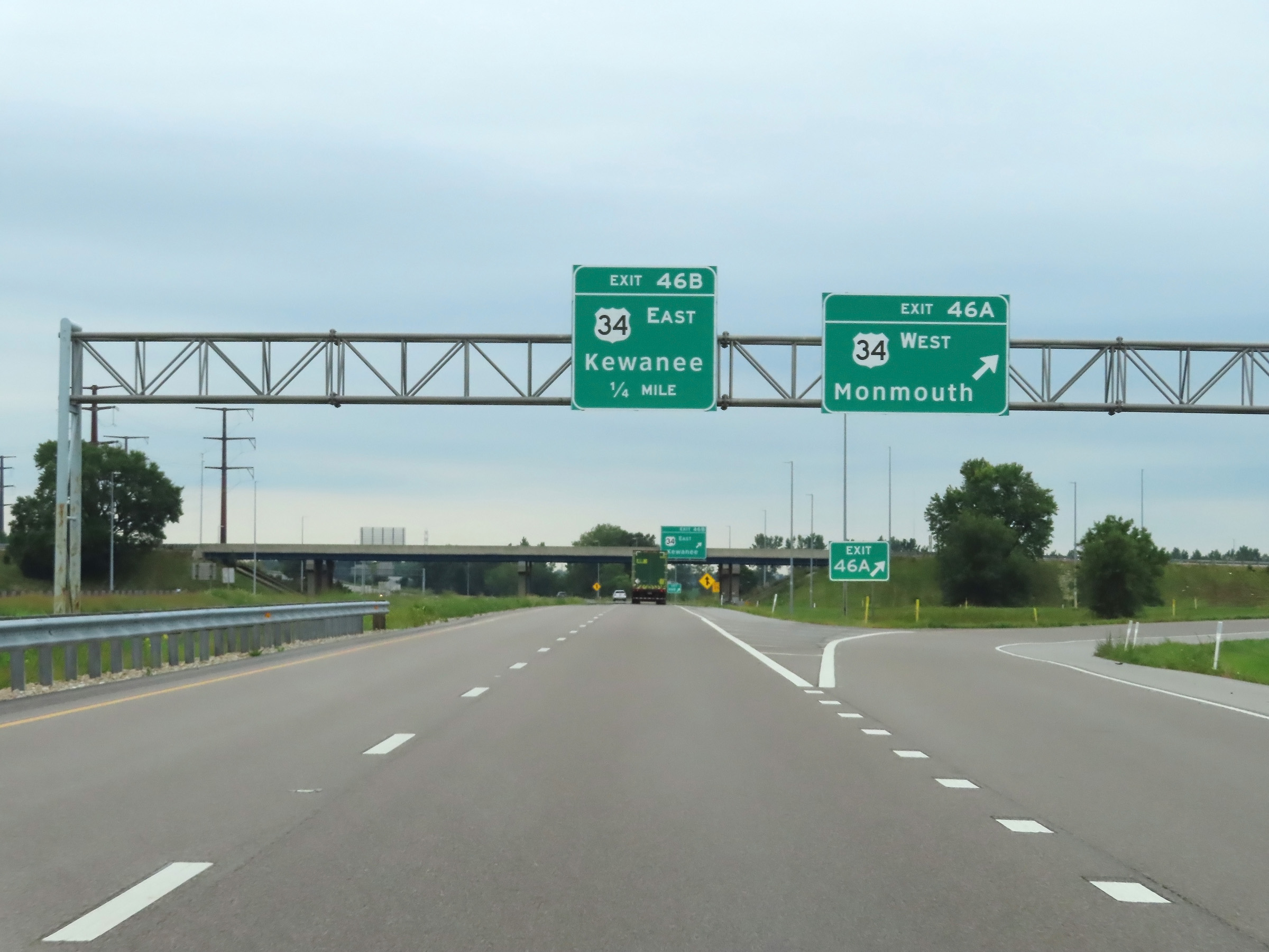 Interstate 74 East at Exit 46A: US 34 West - Monmouth (Photo taken 8/20/22). |