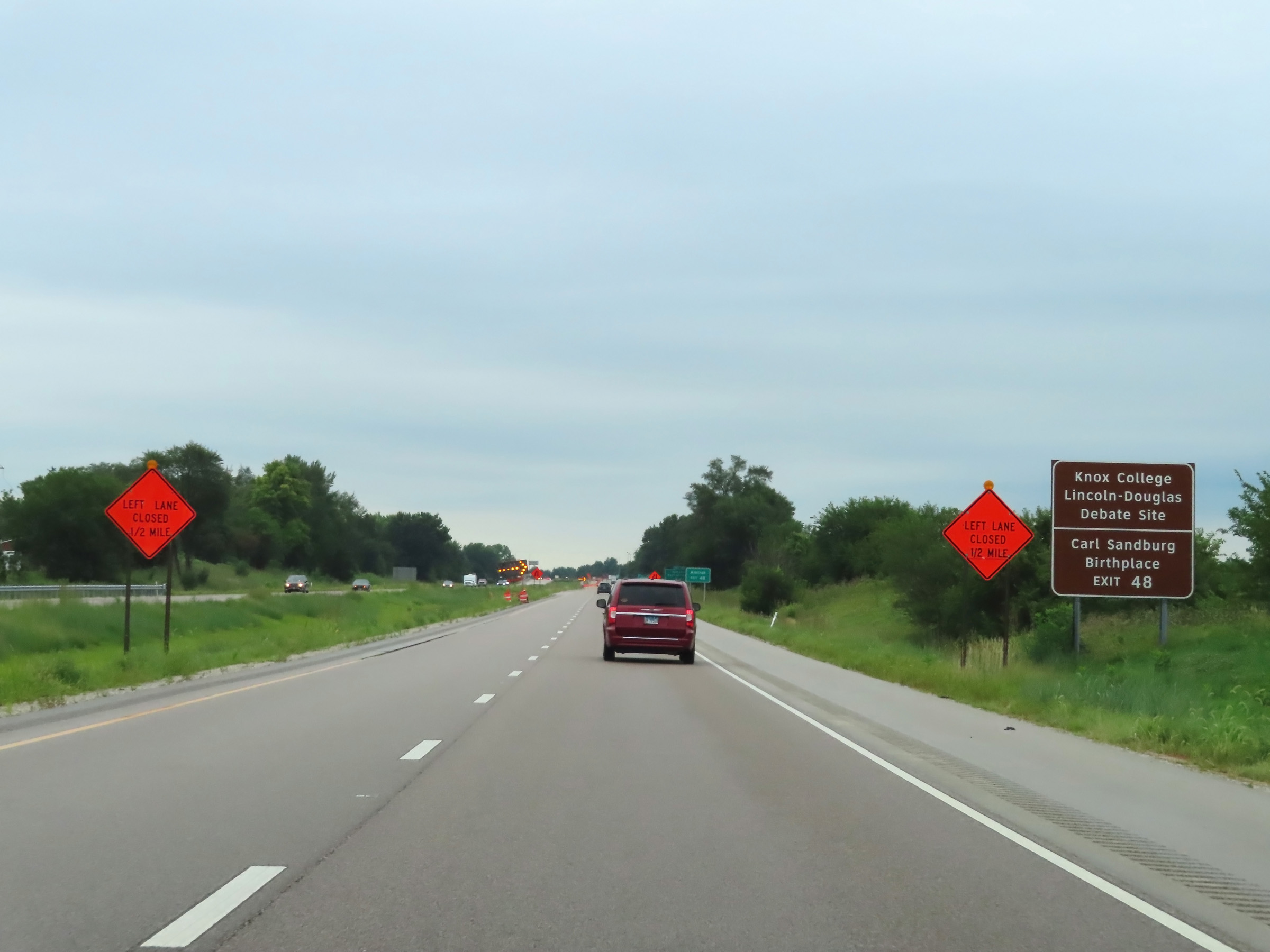 Take Exit 48 to Knox College, the Lincoln-Douglas Debate Site, and the Carl Sandburg Birthplace. (Photo taken 8/20/22). |