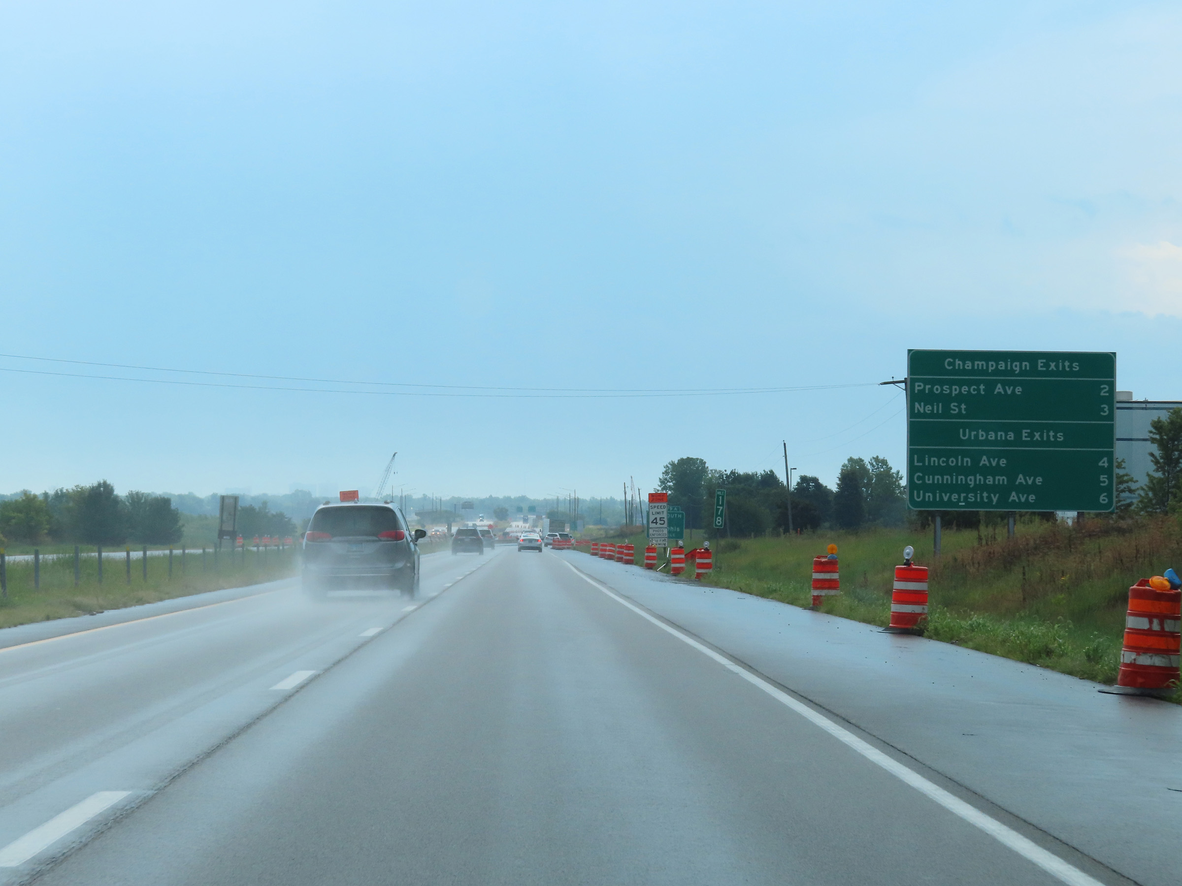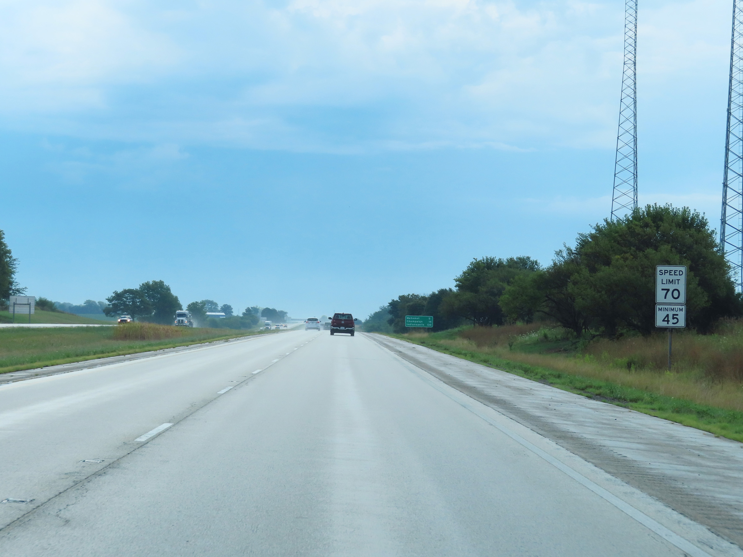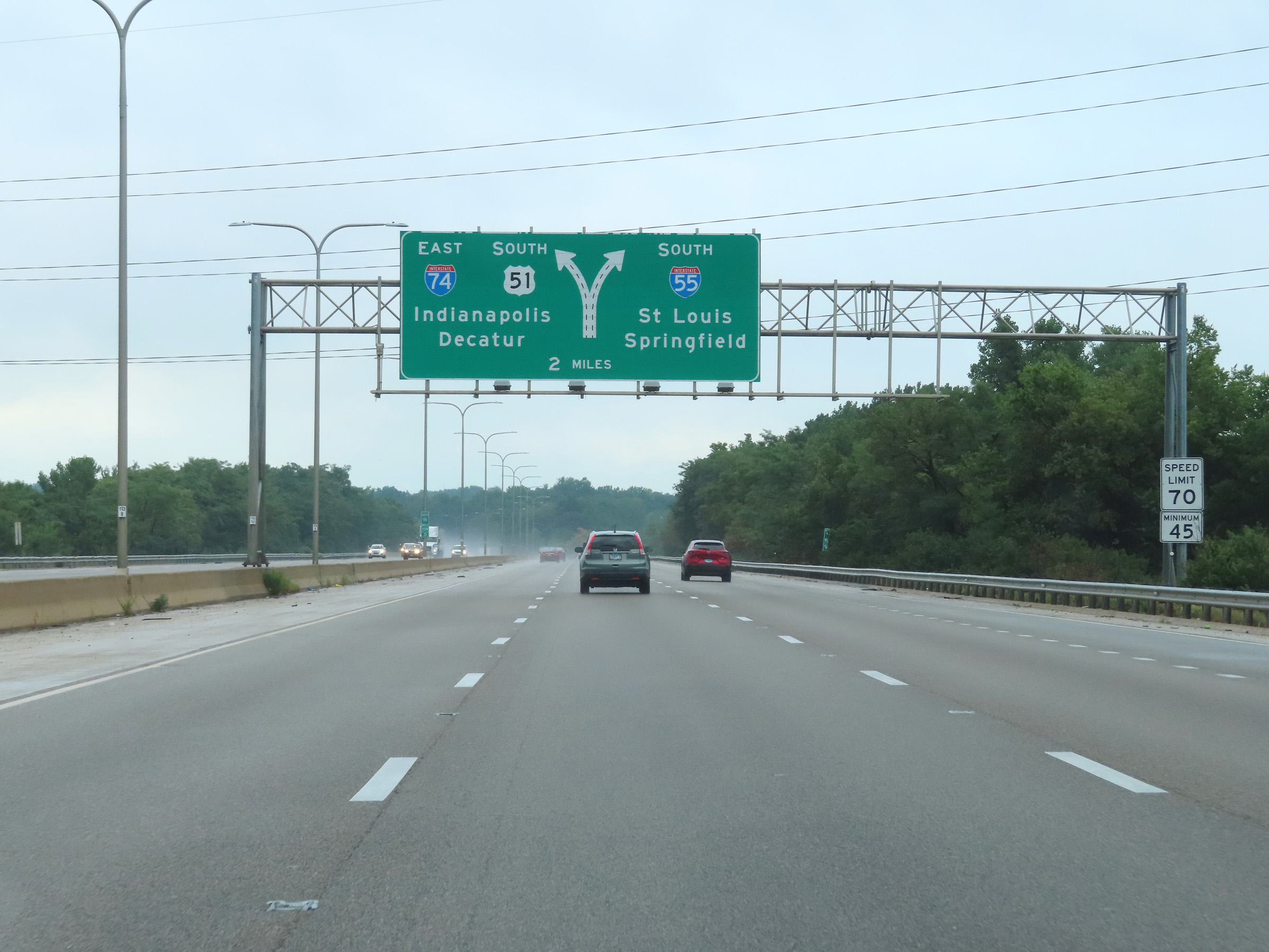 The speed limits on Interstate 74 East in Illinois start out at 55 mph maximum and 45 mph minimum. (Photo taken 8/19/22). |