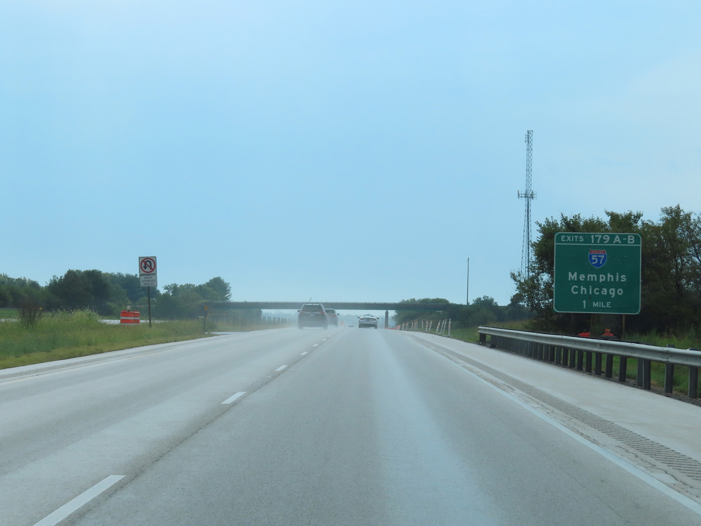 View on Interstate 74 East approaching mile marker 1 in Moline. (Photo taken 8/19/22). |