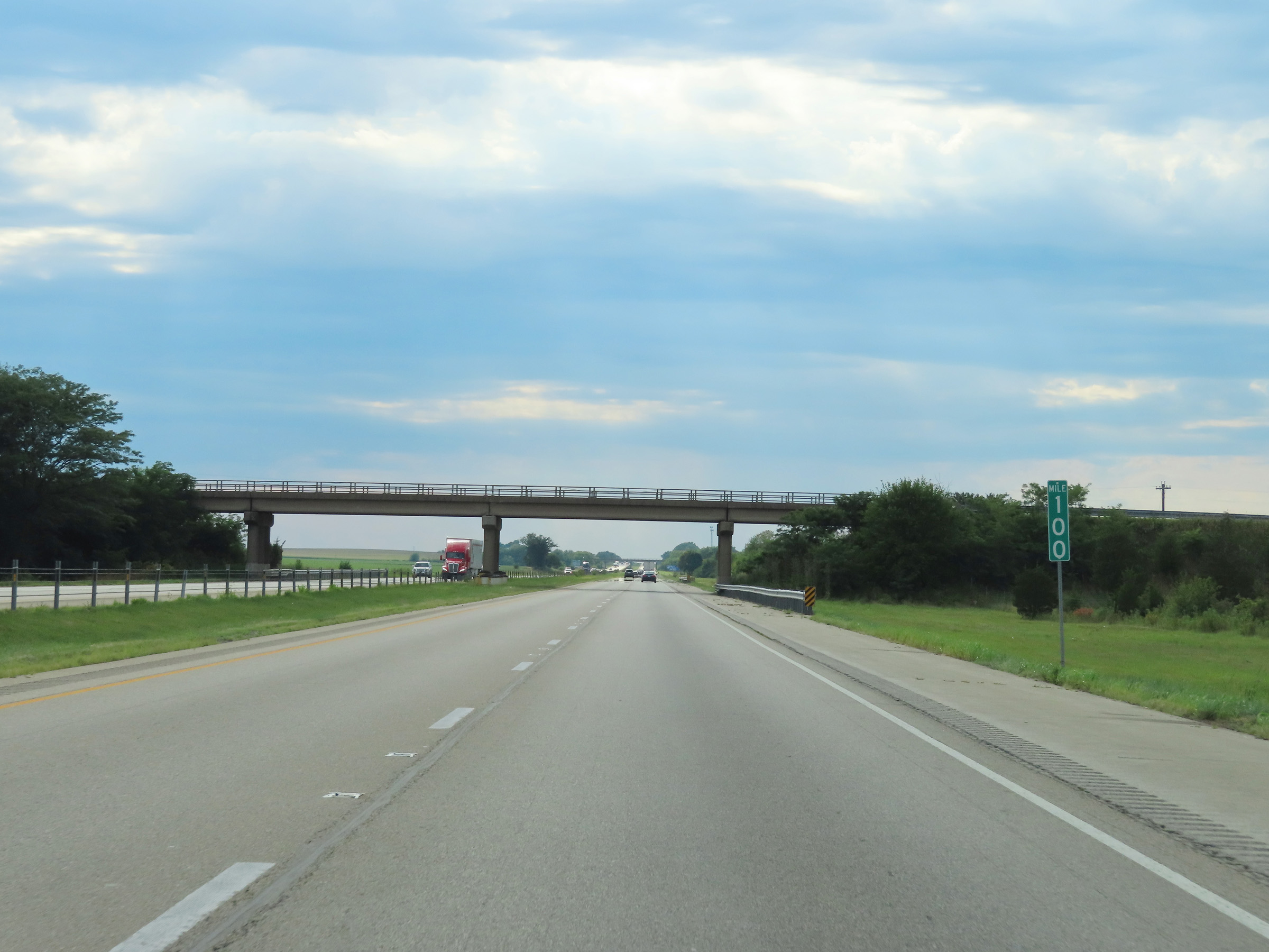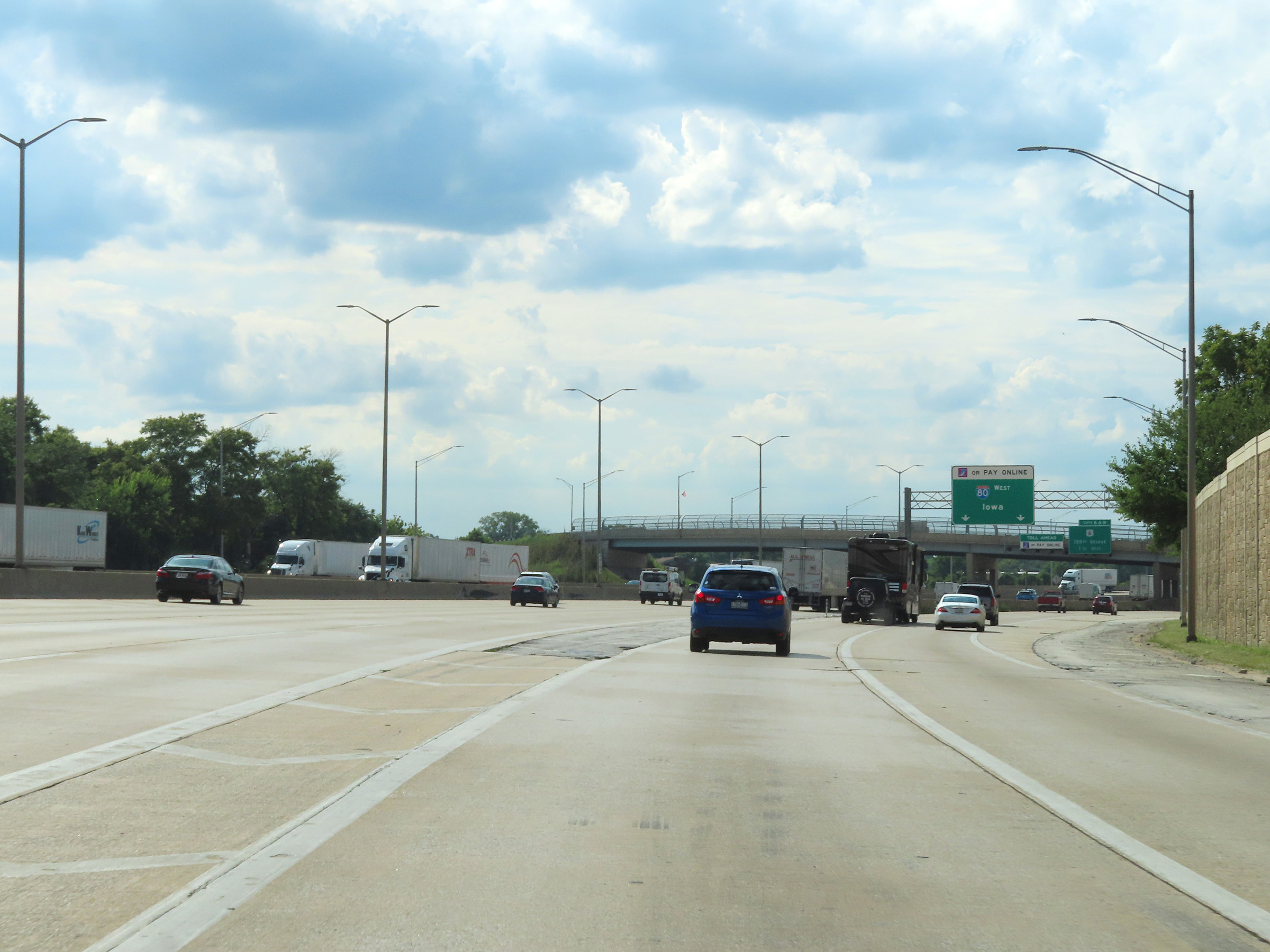 View on Interstate 80 West at mile marker 11, approaching the junction of Interstate 74 / Interstate 280. (Photo taken 8/19/22). |