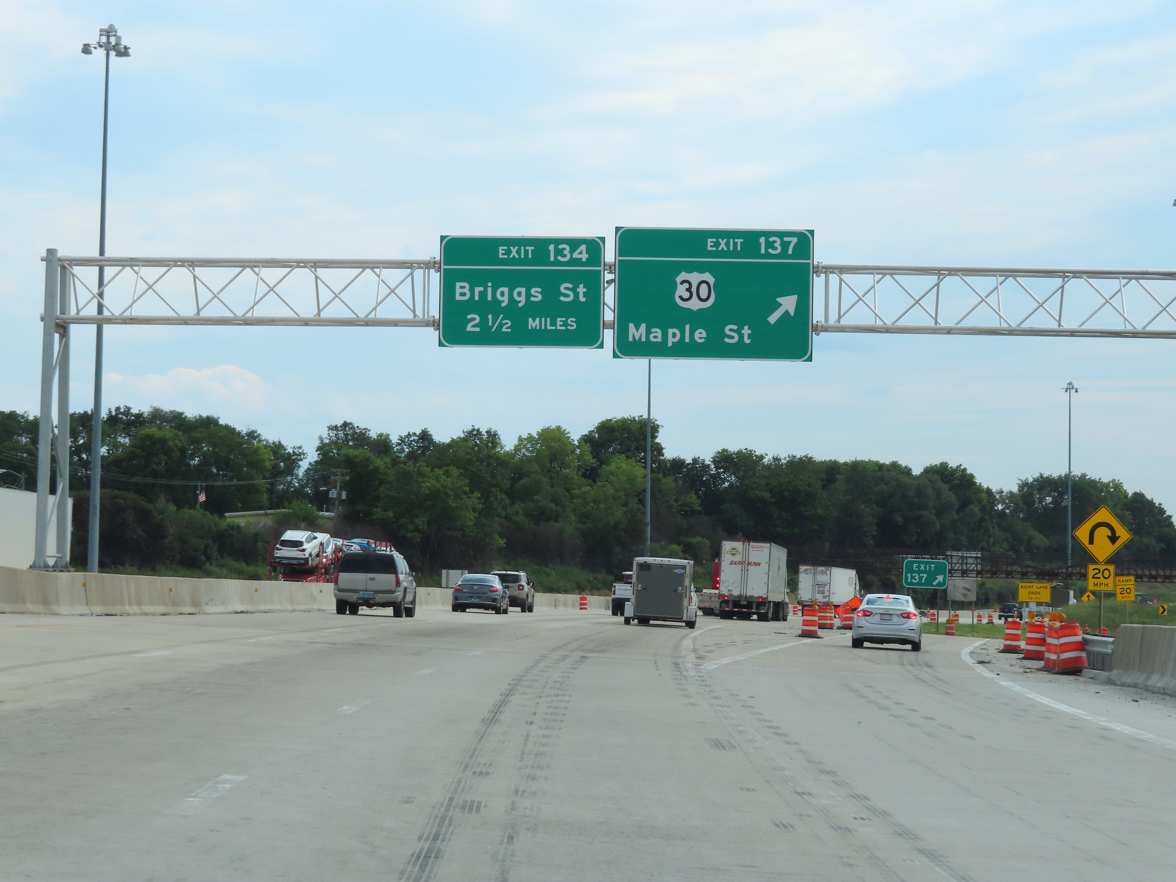 Interstate 80 West at Exit 45: IL 40 - Peoria / Sterling (Photo taken 8/19/22). |
