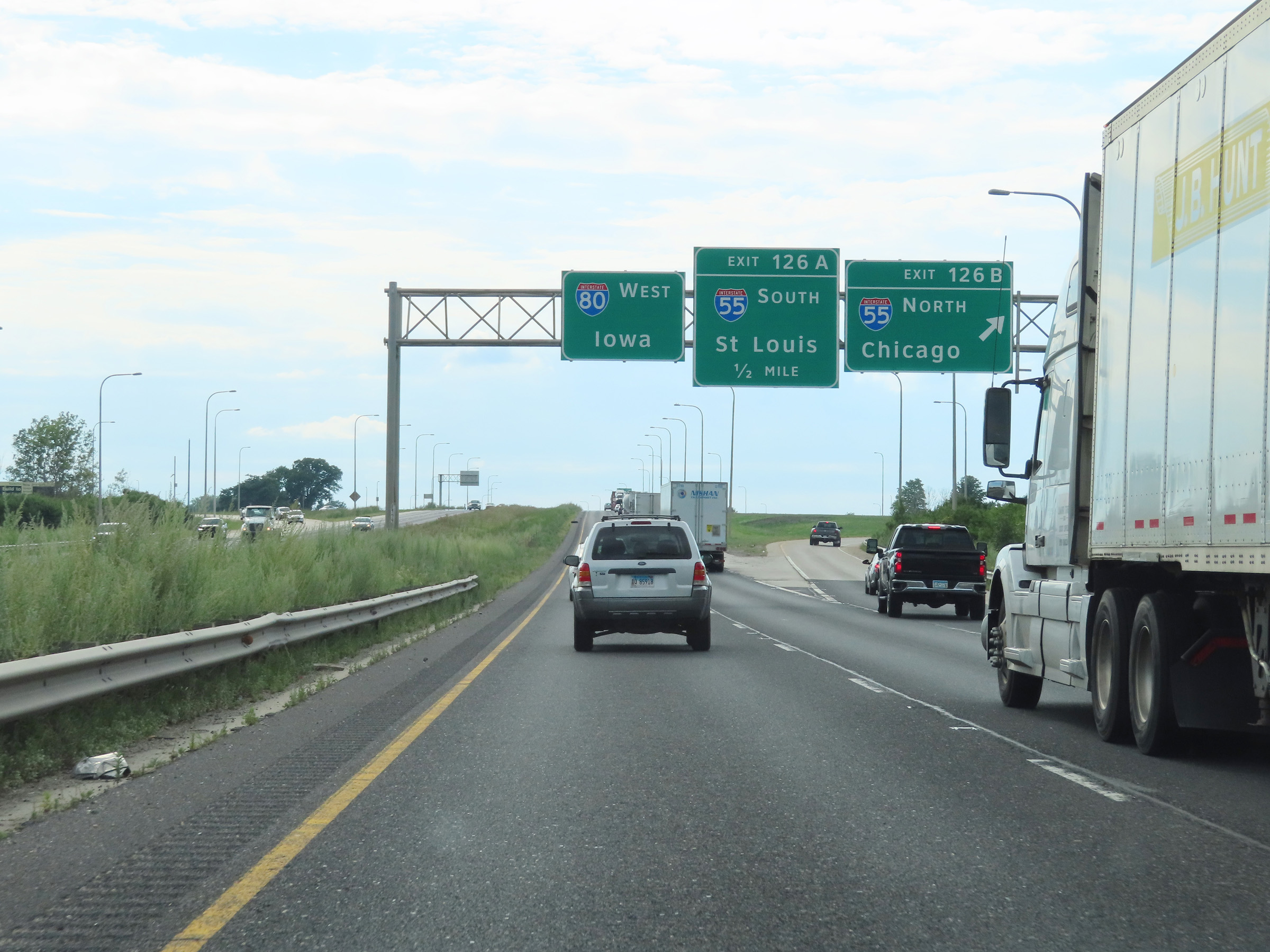 Interstate 80 West at Exit 4A: IL 5 West / IL 92 West - East Moline (Photo taken 8/19/22). |