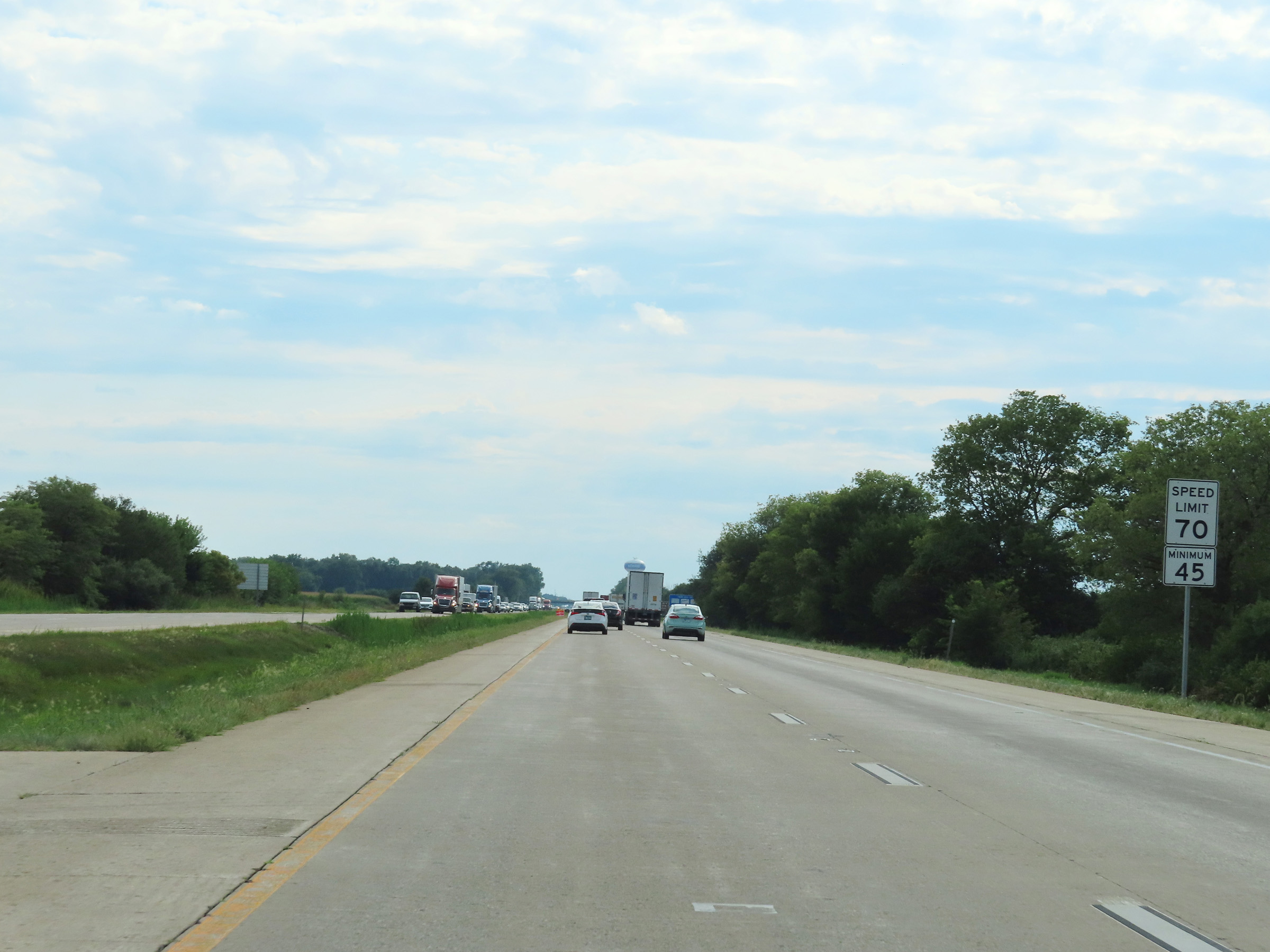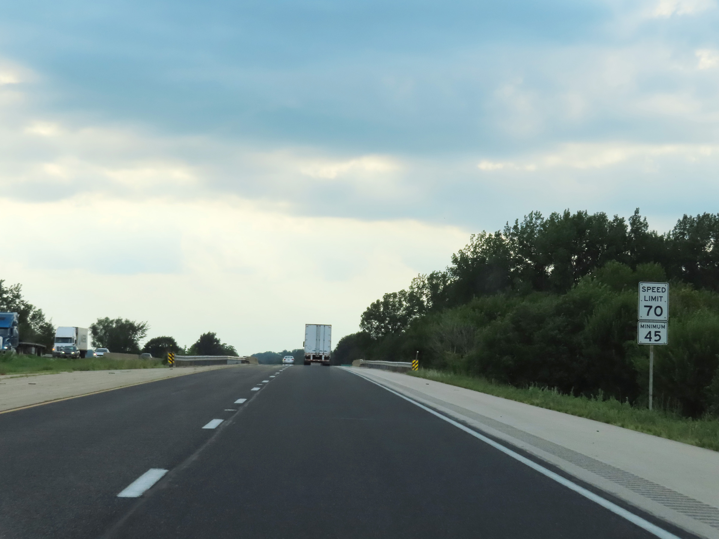 The speed limits on Interstate 80 West at this point remain 70 mph maximum and 45 mph minimum. (Photo taken 8/19/22). |
